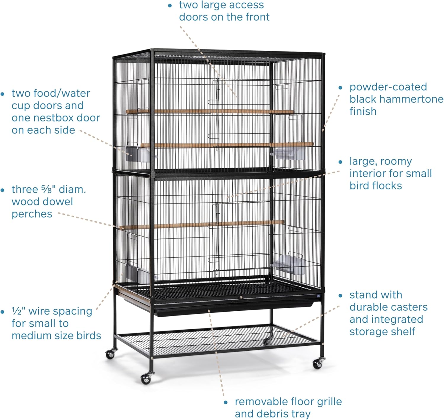 Prevue Pet Products Wrought Iron Flight Cage with Stand F040 Black Bird Cage, 31-Inch by 20-1/2-Inch by 53-Inch