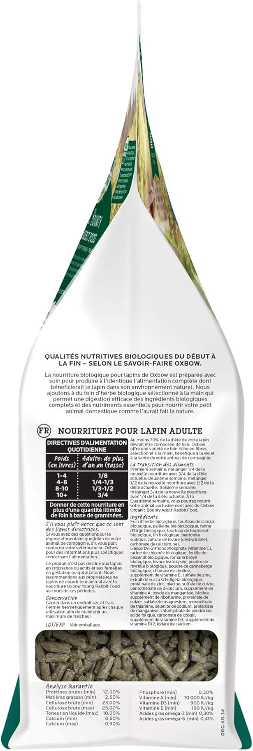 • ADULT RABBIT FOOD: Unleash the natural joy of your rabbit with Oxbow Organic Bounty Adult Rabbit Food; Indulge them with delicious pellets, each made with 100% hand-selected, certified organic meadow hay for rabbits; A feast they will truly enjoy