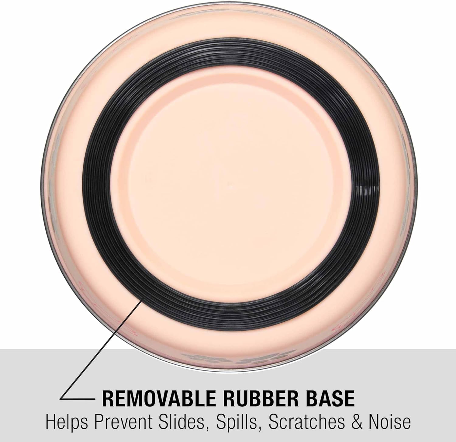 • REMOVEABLE RUBBER BASE - This feature prevents and ensures no spill water bowl for dogs. Itโ€™s perfect for puppy food and makes an excellent addition to your dog feeding station. Watch the bowl stand steady on your pet food mat, making it a great complement to your dog mat and other dog stuff.