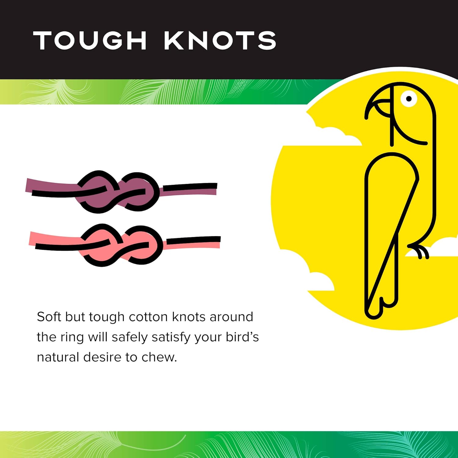 • TOUGH KNOTS: Soft but tough cotton knots around the ring will safely satisfy your bird's natural desire to chew