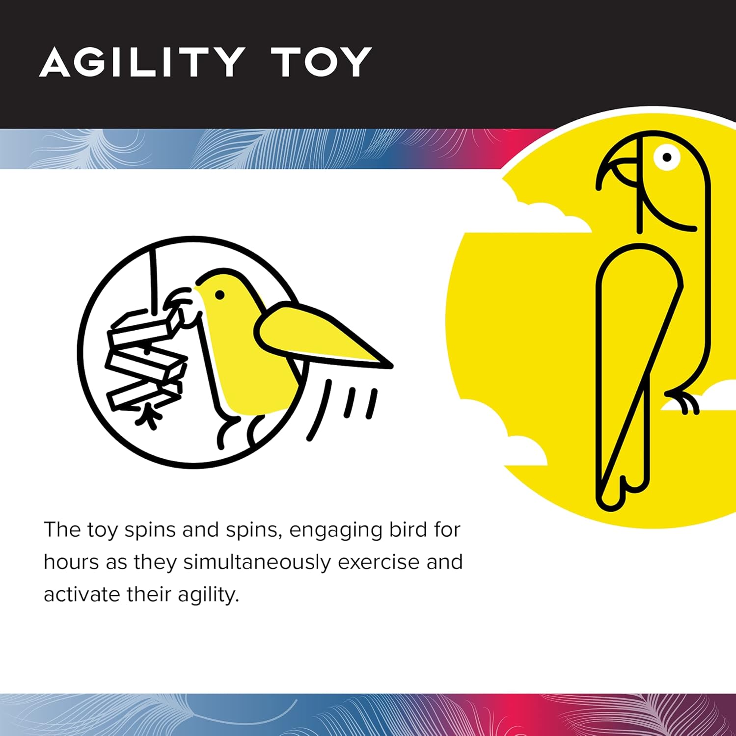 • EASY INSTALLATION: The Spinning Falls toy attaches easily to any cage, ensuring your bird can start playing as quickly as possible
