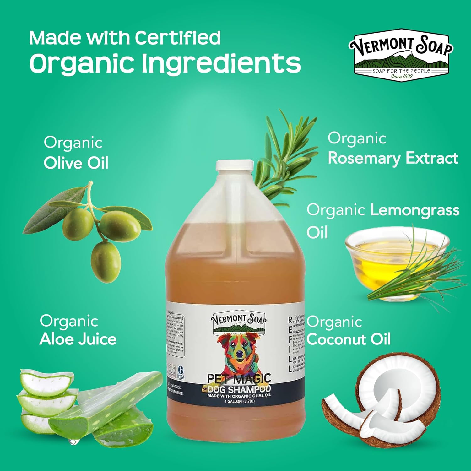 • USDA CERTIFIED: After passing all the federal guidelines, our Vermont Soap coconut dog shampoo is Certified by the USDA organic food standards. It means Vermont Soap only sells products that are natural and organic and approved by USDA.