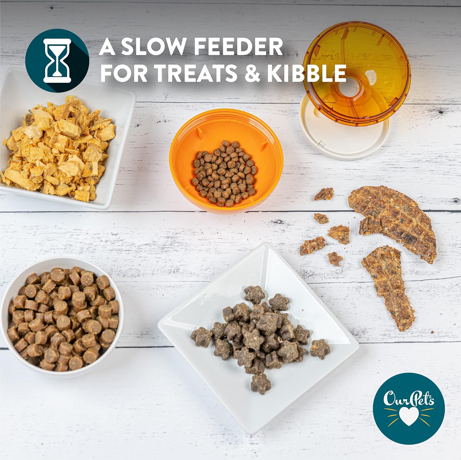 • EASY TO USE AND CLEAN: Our interactive treat dispensing dog toys conveniently uses your dog's favorite dry treats or kibble. It is made from hard plastic that disassembles for easy cleaning. Rinse in warm soapy water and dry after use.