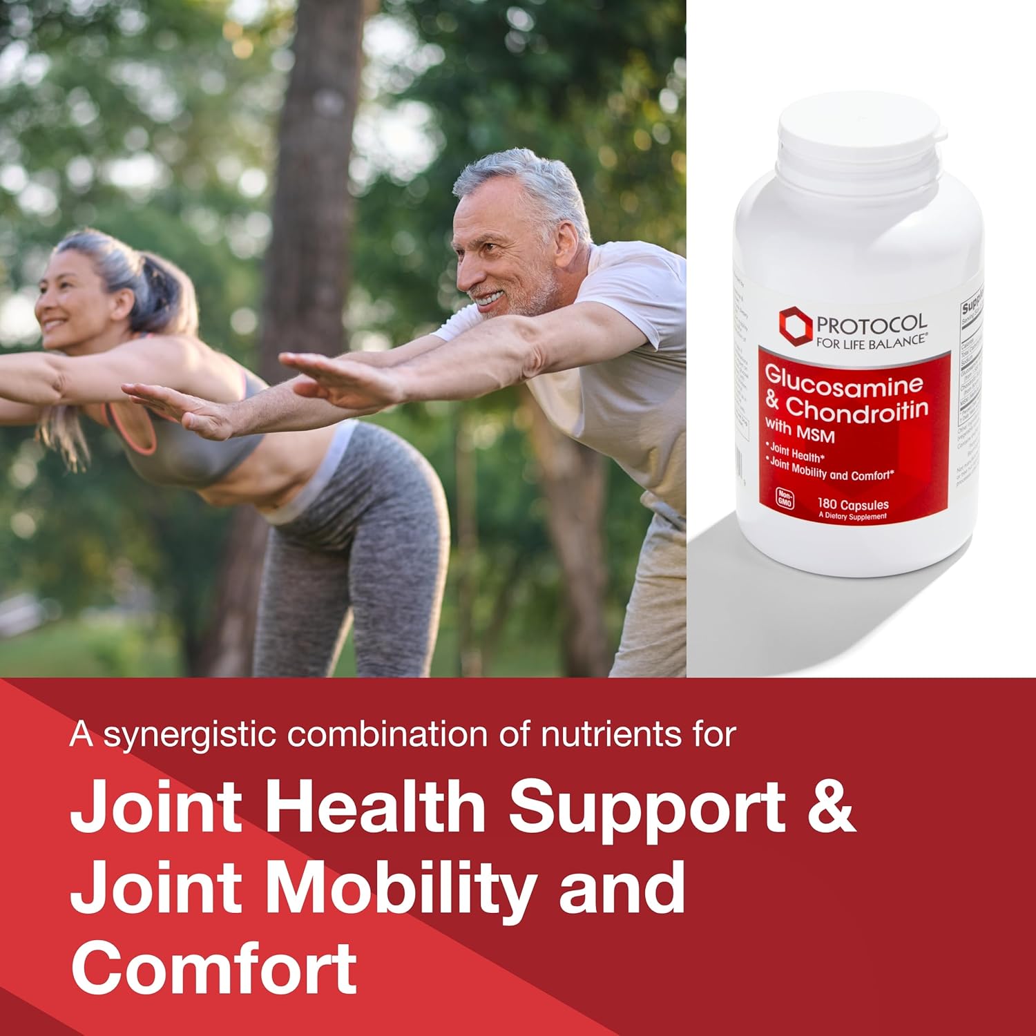 Protocol Glucosamine & Chondroitin with MSM - Joint Support* - Chondroitin MSM Supplement - Non-GMO & Dairy Free - 180 Veg Caps