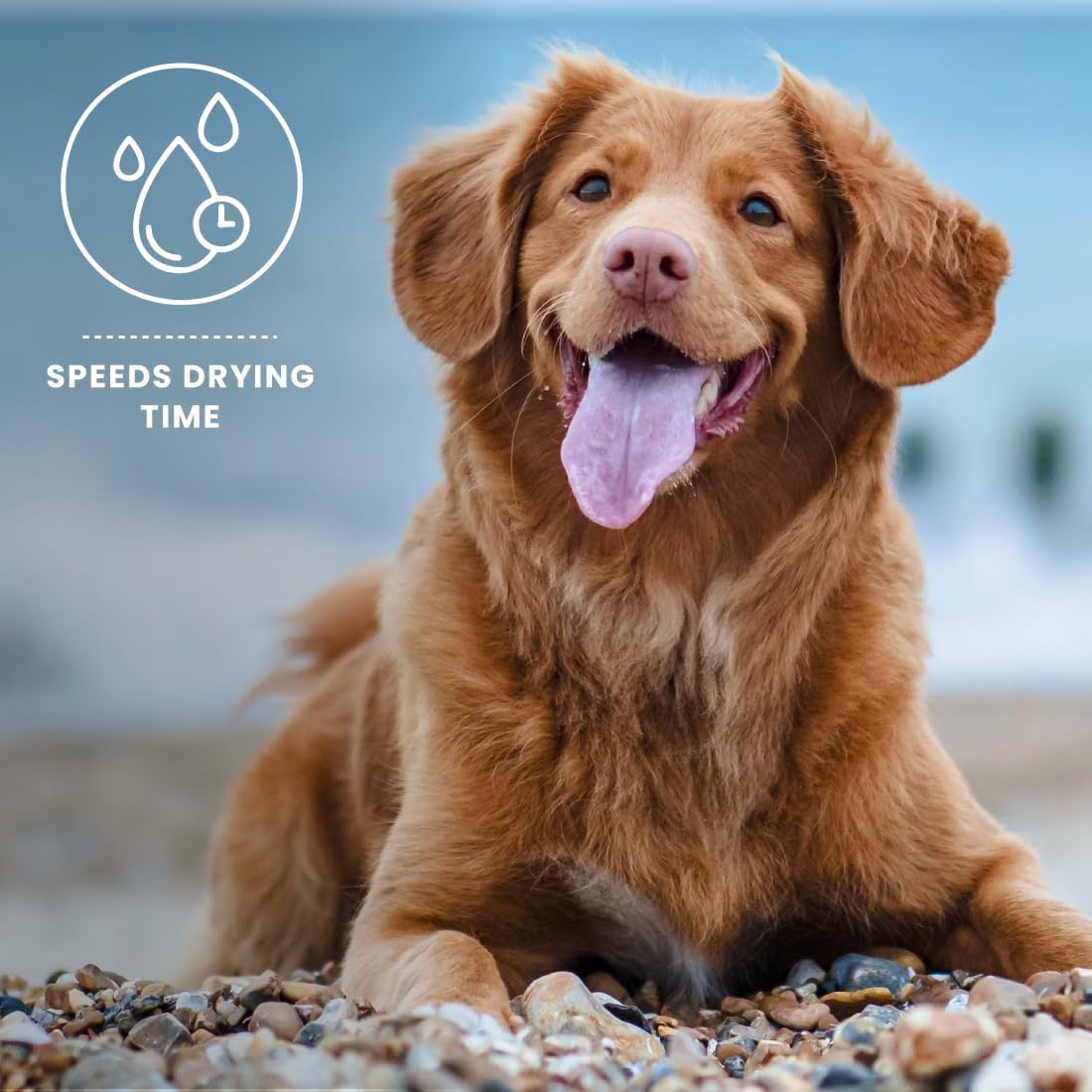 • Finishing Spray: Our refreshing pet grooming spray hydrates your petโ€™s coat, soothes their skin, and eliminates static effectively. Apply it after washing your dog's coat, as the spray speeds up the drying time and makes detangling effortless.