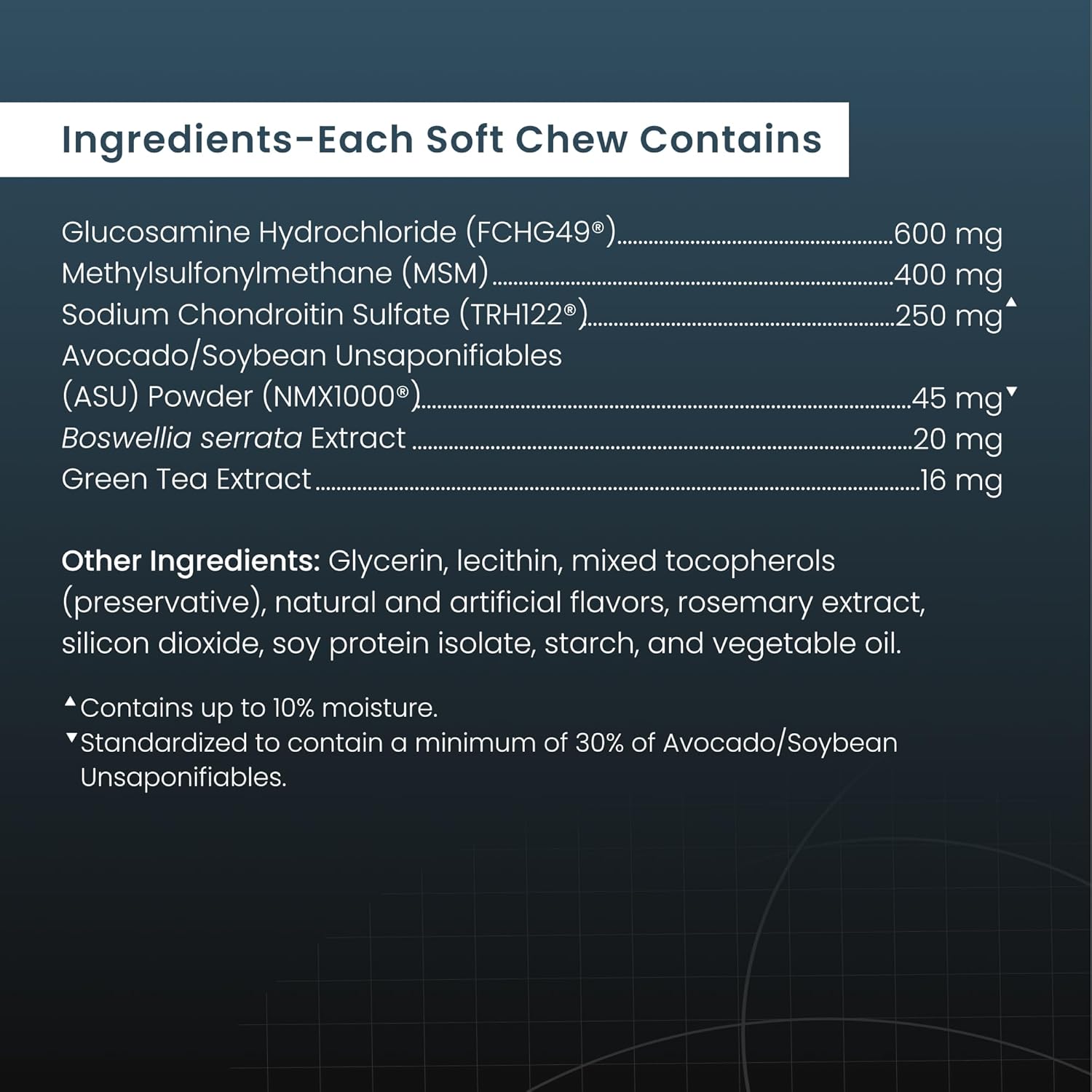 • Better Together with ASU - Dasuquin goes beyond standard glucosamine supplements with avocado/soybean unsaponifiables (ASU), a unique ingredient that works synergistically with glucosamine and chondroitin to help support healthy joints and cartilage.