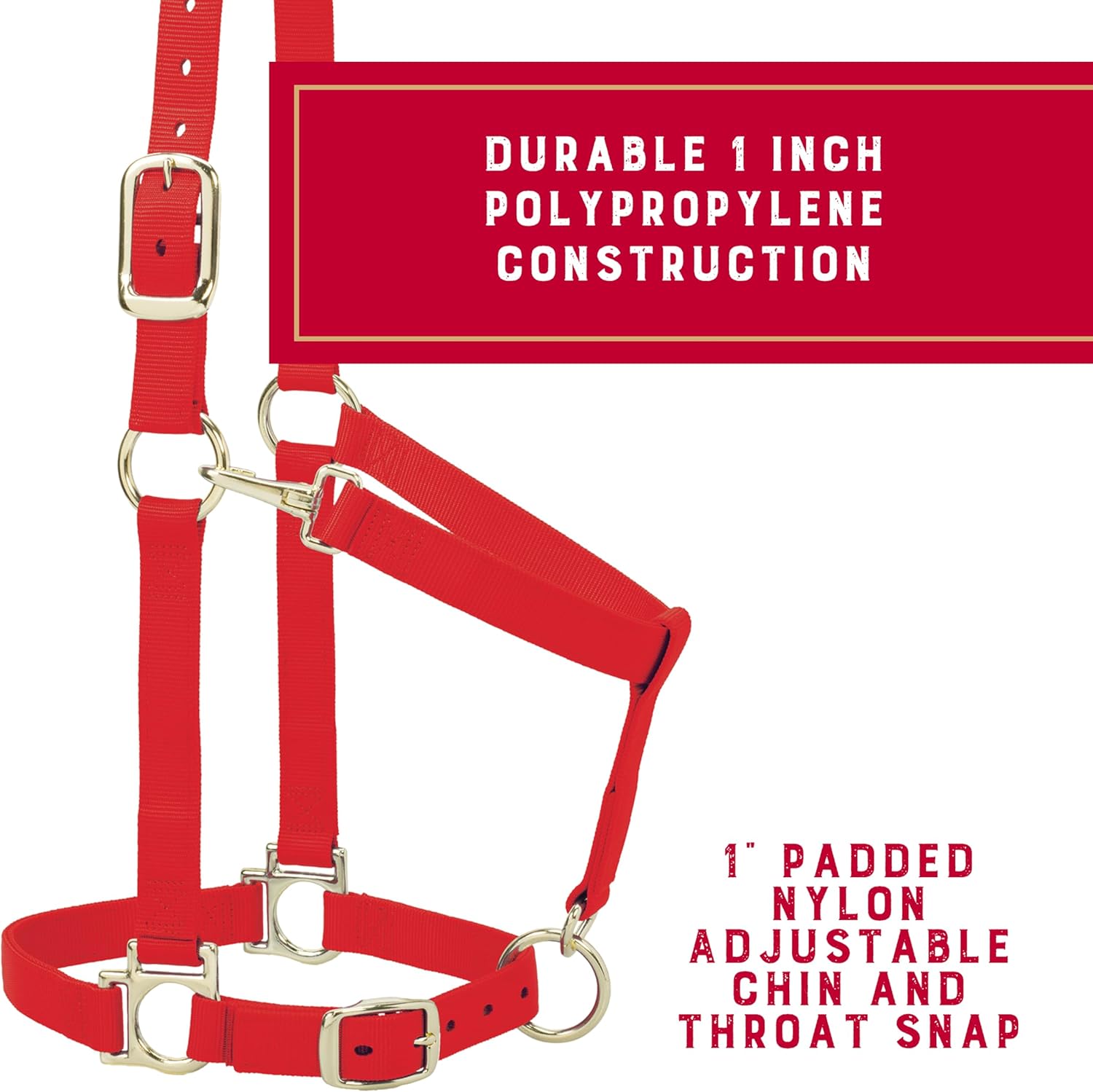 • Stylish and Functional: Available in attractive solid colors, the draft horse halter features durable brass plated hardware and heat-sealed oblong buckle holes for quick release and a secure fit; designed specially for daily handling
