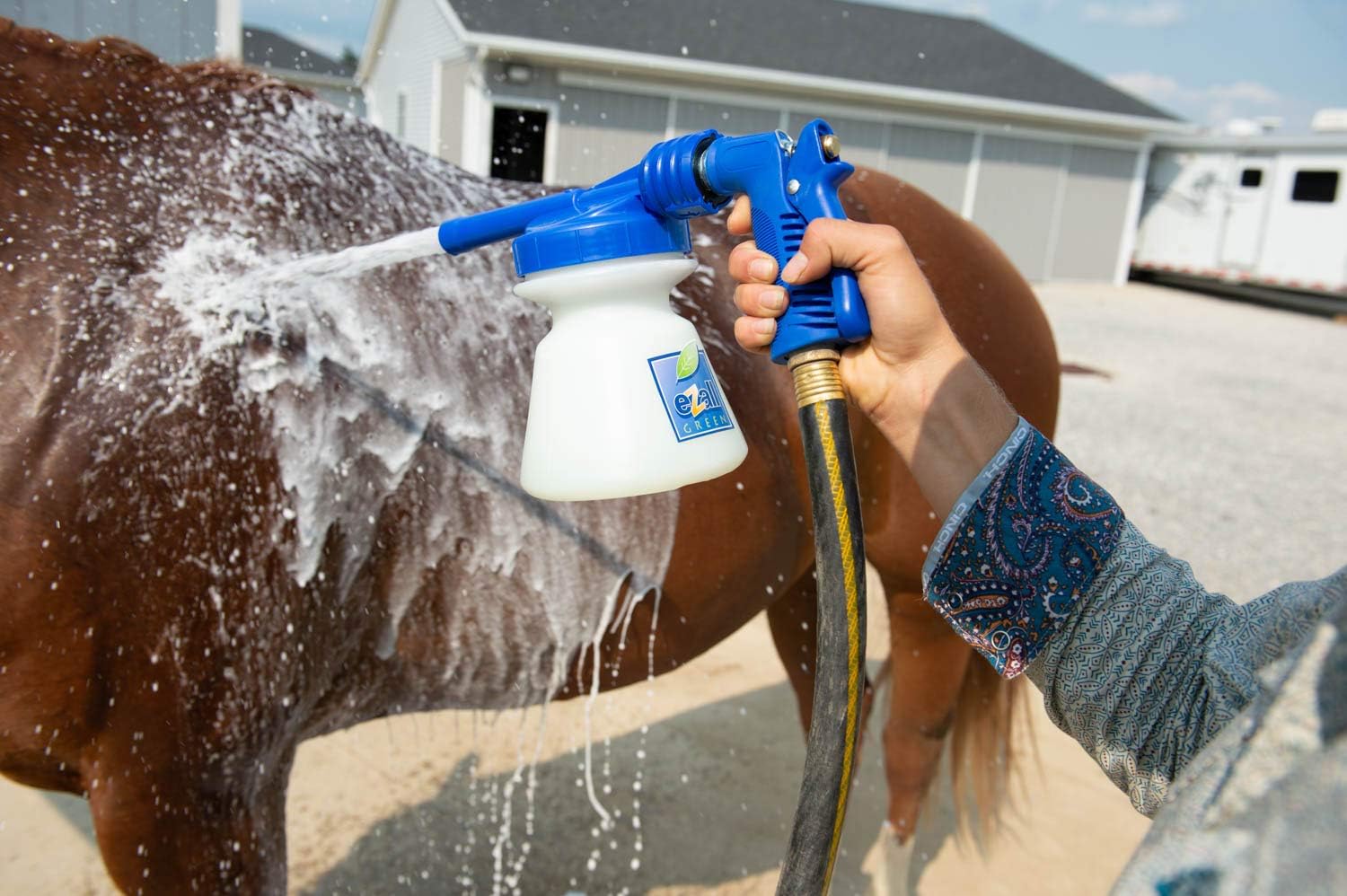 • The kit includes a foamer, hose nozzle, nine-position rinse attachment and 4 oz. bottle of eZall super concentrate body wash that makes 32 oz. of body wash