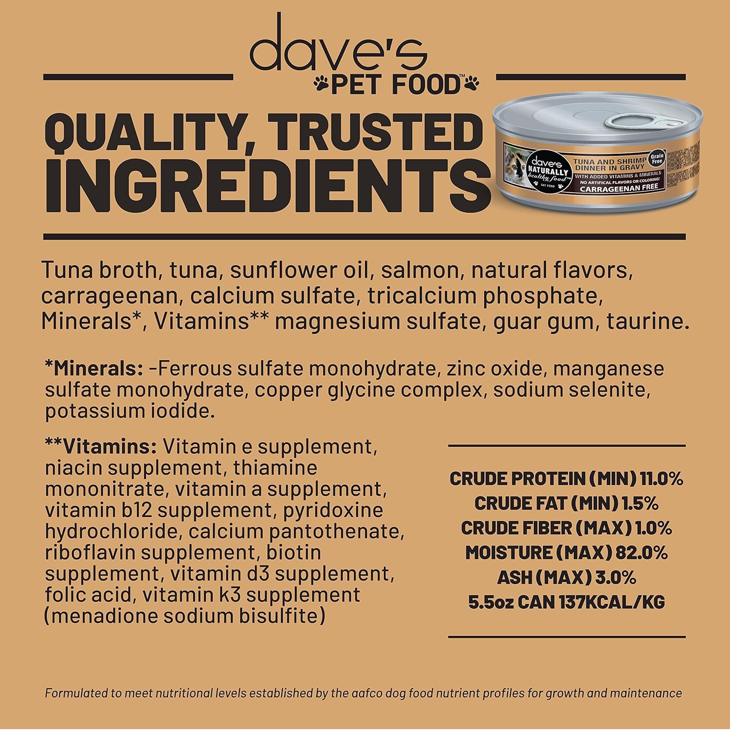 • ADDED VITAMINS & MINERALS. With flavor and nutrition at the forefront, your cat will love the taste of Dave’s nutrient-dense recipe.
