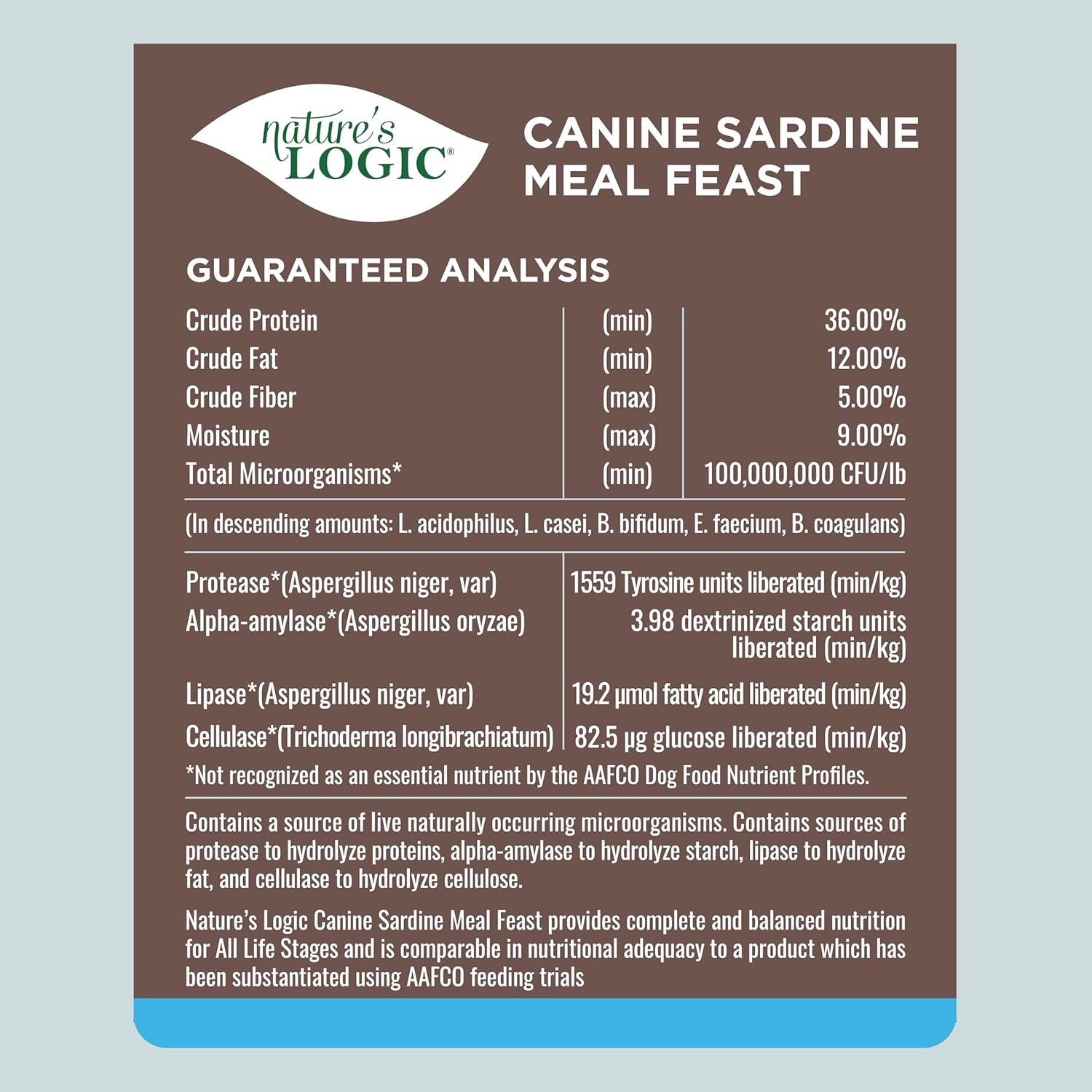 Nature's Logic Dry Dog Food - 100% Natural - No Synthetics - For All Ages, Sizes, Breeds - Free From Common Allergens, High Protein - Sardine Meal Feast, 4.4lbs
