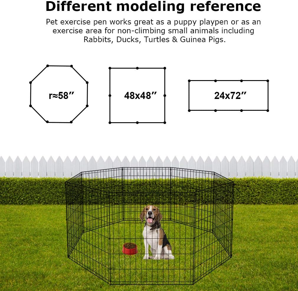 • ✔【STURDY AND DIFFERENT SHAPES METAL DOG FENCE】:The dog playpen made of high-strength solid wire,8-Panel pet fence design allow to configure into multiple shapes, pet fence to hold firmly to the ground while being used outdoors.Dog fence dog playpen exercise playpen for dog.