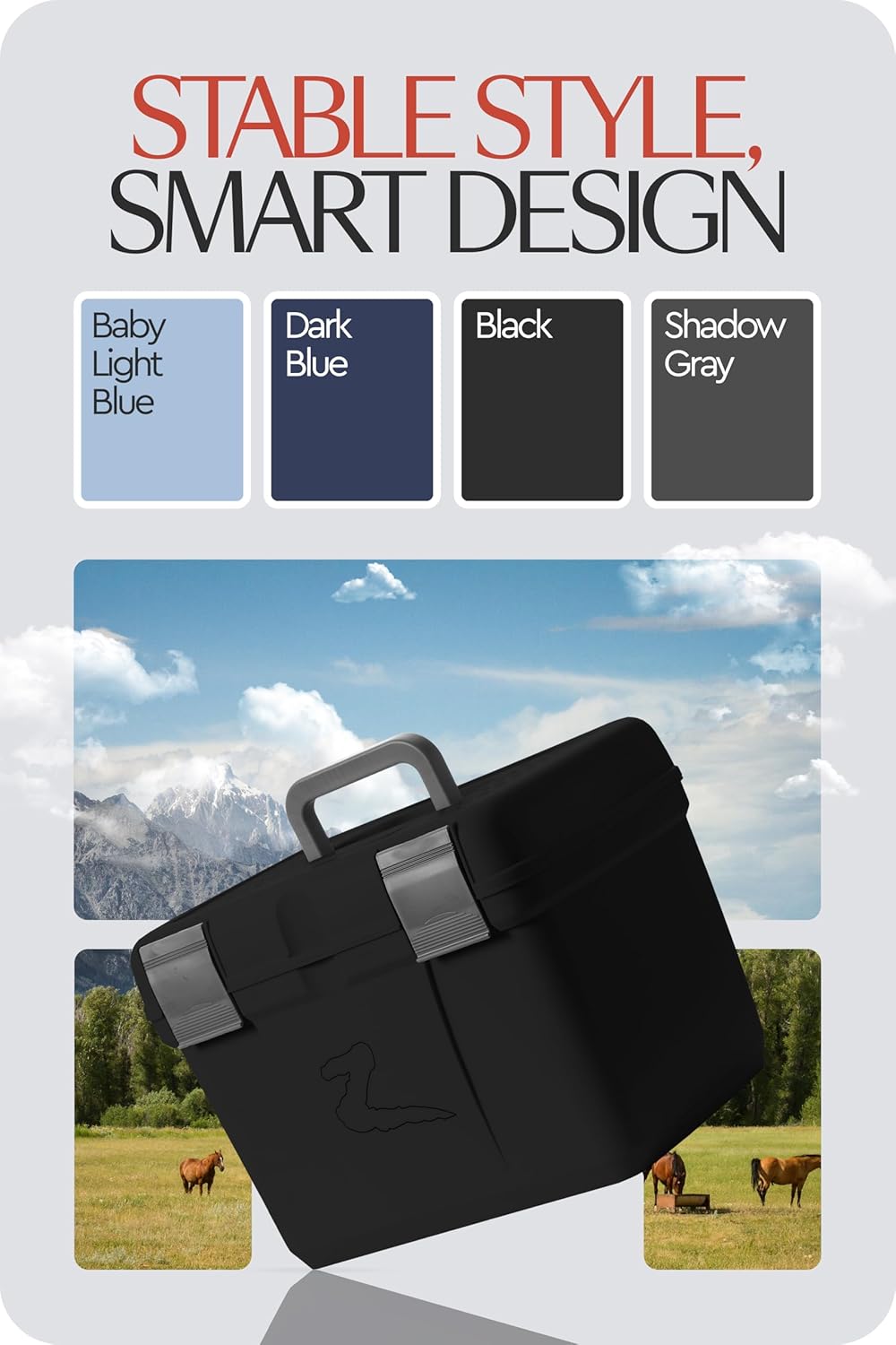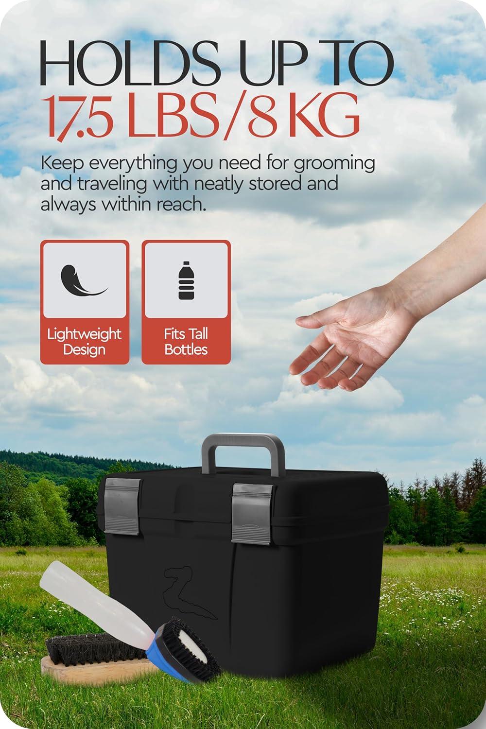 • ✅ More Than Just a Grooming Box: This grooming tote box doubles as a step for when you need one. Thanks to a non-slip surface on the lid you can safely use the box as a step to help groom your horse.
