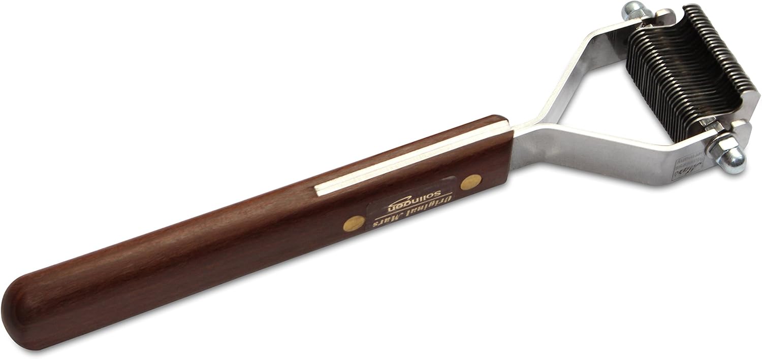 • RELIABLE DOG GROOMING TOOL: Made with stainless steel and a wooden handle for an easy grip, this pet rake stripper tool is perfect for deshedding and thinning your cat or dogโ€™s coat.
