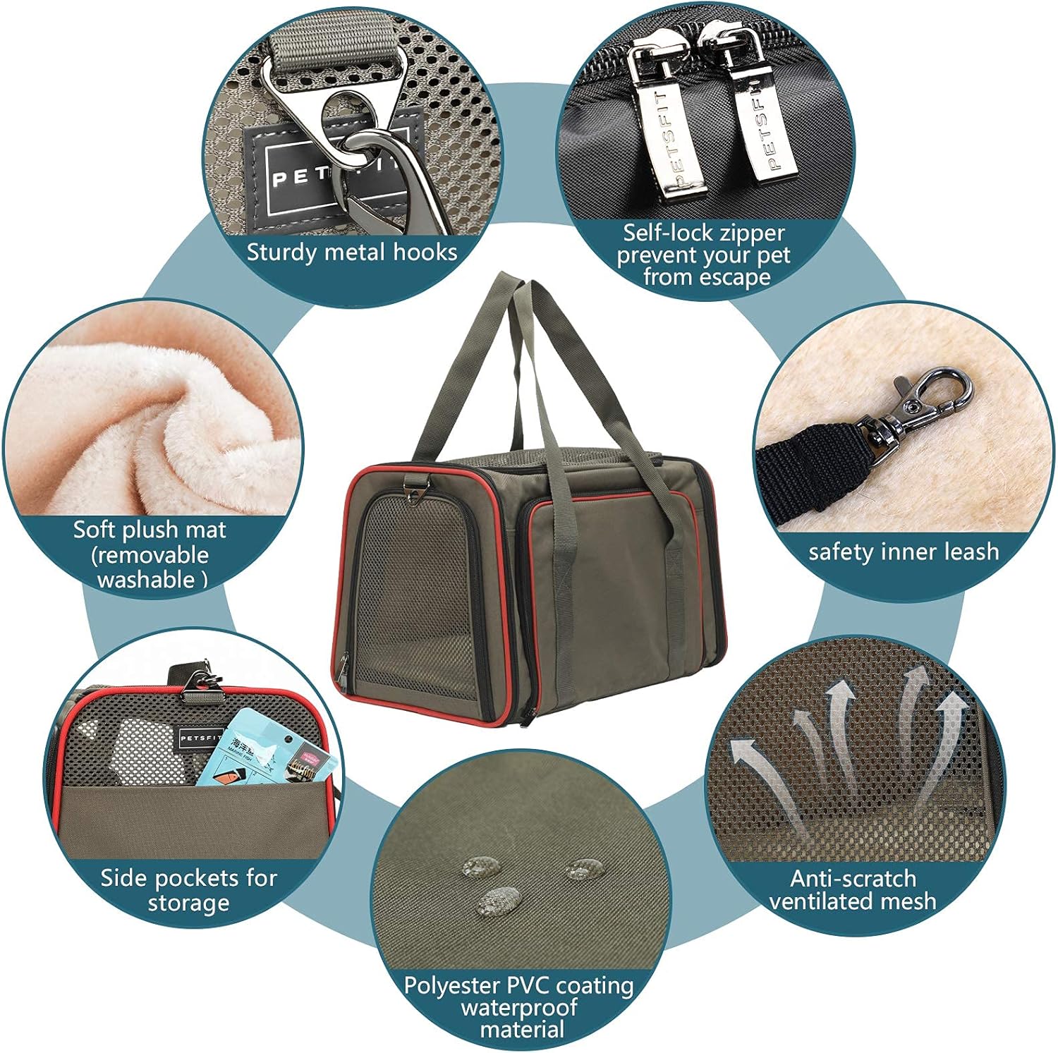 • 【AIRLINE APPROVED CARRIER 】This carrier of S & M size is airlines approved, in compliance with most airline standard size rules. Easily to get this under the airplane seat when travel. As for the size of L, it is best to check the size standard of the corresponding airline(PS:There are two detachable fiber rods on both sides of the top of the carrier. When the large carrier is too high to fit under the seat, you can remove the two fiber optic rods and put them in easily)