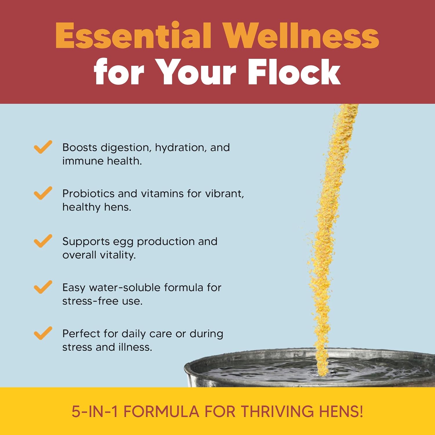 • Chicken Supplements - Packed with the essential nutrients your hens need to thrive, these vitamins for chickens support their overall wellness. With a unique formula that combines the benefits of five products in one bag, it's easy to keep your flock happy.