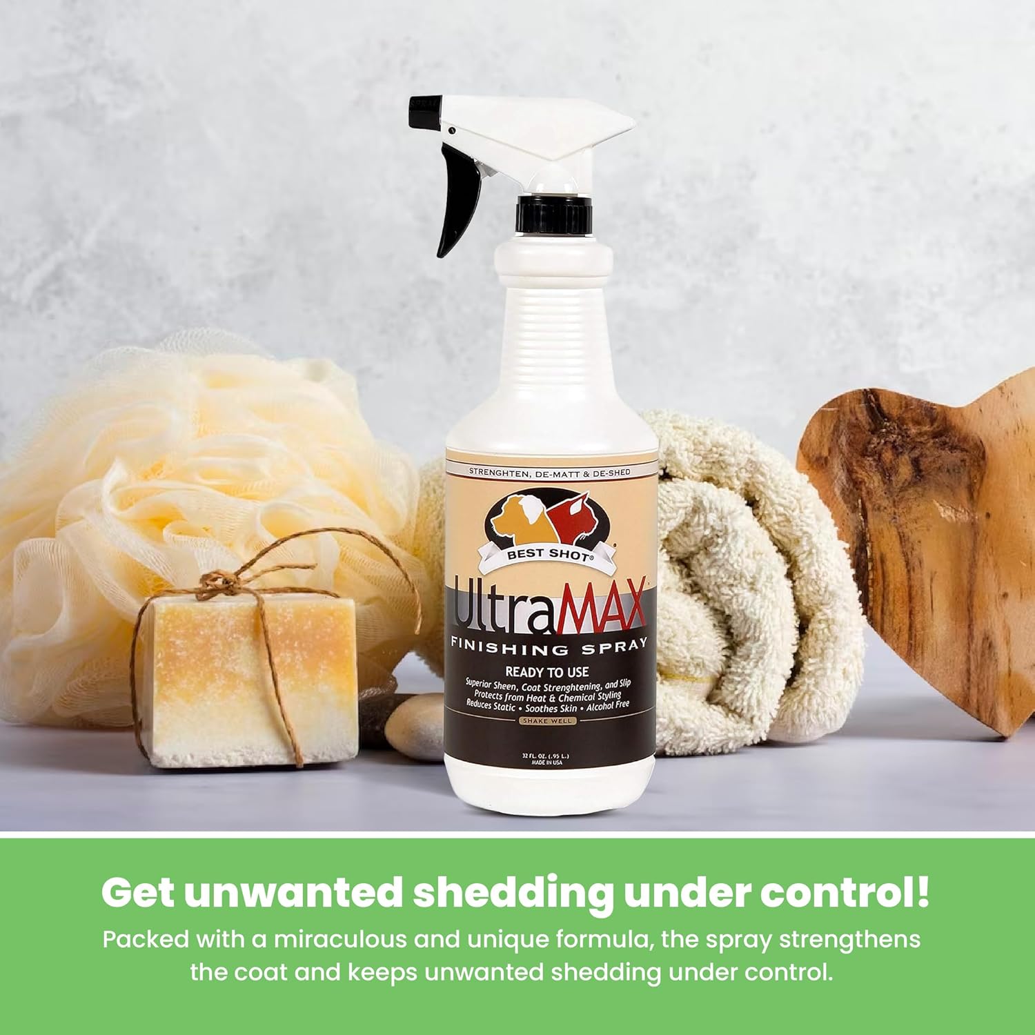Best Shot UltraMAX Pro Finishing Spray, Ideal Detangler Spray for Pets, Hydrating and Soothing Pet Grooming Spray, for Dogs and Cats, 34 Oz.