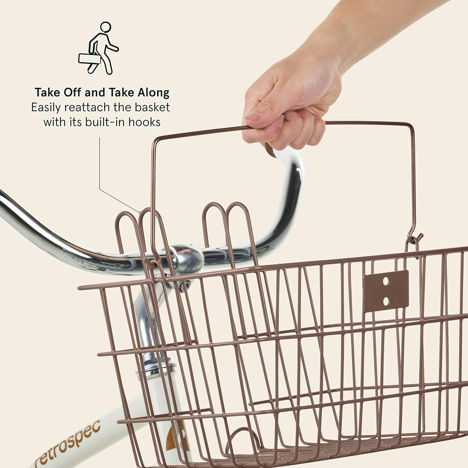 • Integrated hooks to effortlessly attach basket to bicycle handlebars
