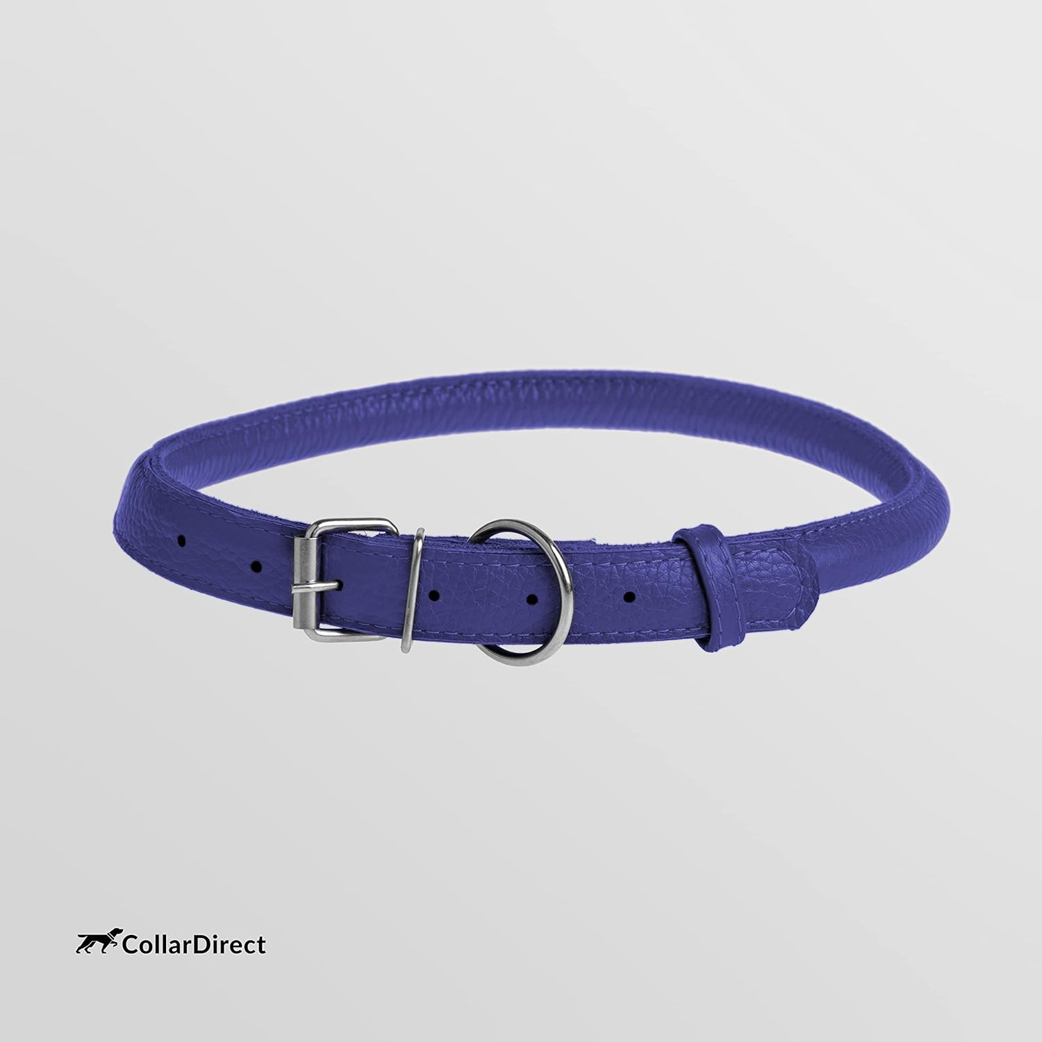 CollarDirect Rolled Leather Dog Collar, Soft Padded Round Puppy Collar, Handmade Genuine Leather Collar Dog Small Large Cat Collars 13 Colors (6-7 Inch, Purple Textured)