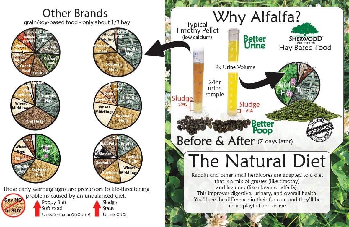 • High fiber prebiotics, including: short and long-strand fibers for optimal digestive health and immune health. Switching brands doesn't have to be hard on your rabbits digestion with Sherwood's real hay-based formula for natural great taste and nutrition that is grain and soy-free. No cheap fillers or by-products that take the place of hay (like soybean hulls or rice hulls)