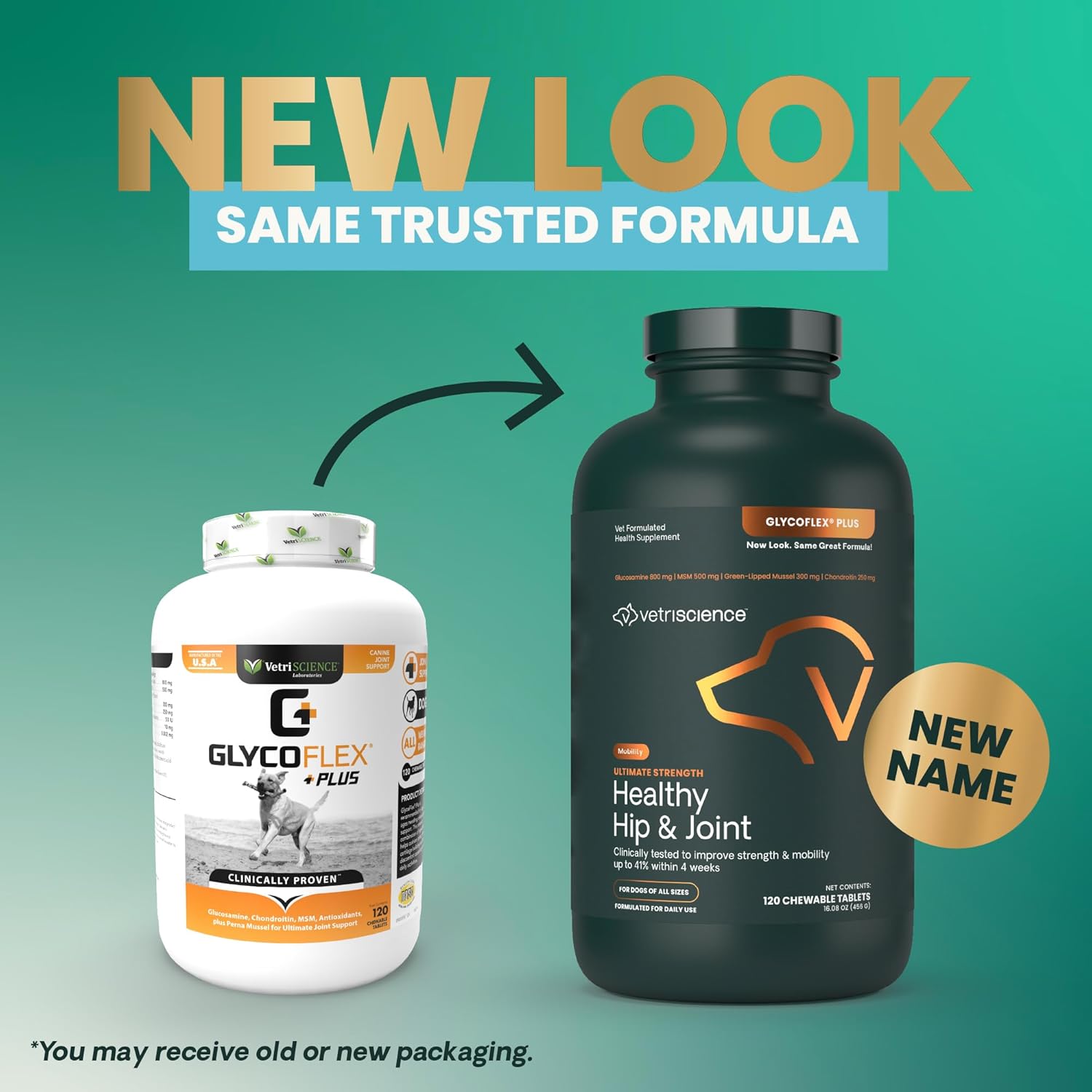 • Glucosamine for Dogs: Ultimate Strength Healthy Hip & Joint (previously GlycoFlex Plus) is our strongest hip and joint supplement for dogs, with powerful levels of active ingredients that work together to help maintain mobility, lubricate joints, and support flexibility
