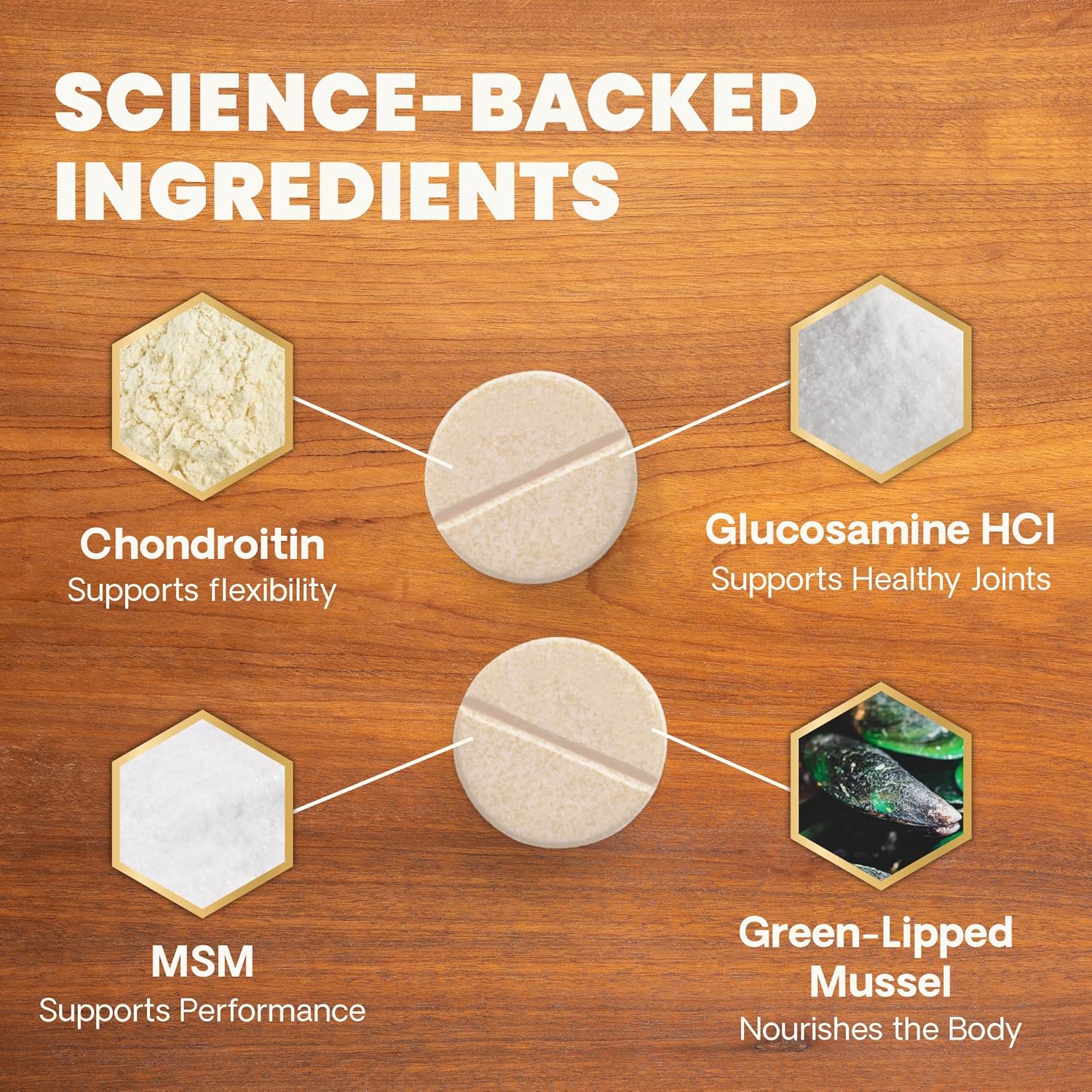 • Delicious Chicken Flavor: These glucosamine and green-lipped mussel joint chewable tablets are like a tasty treat for dogs of all ages and sizes, and the natural imitation chicken flavor is appropriate for dogs with sensitivities to real chicken