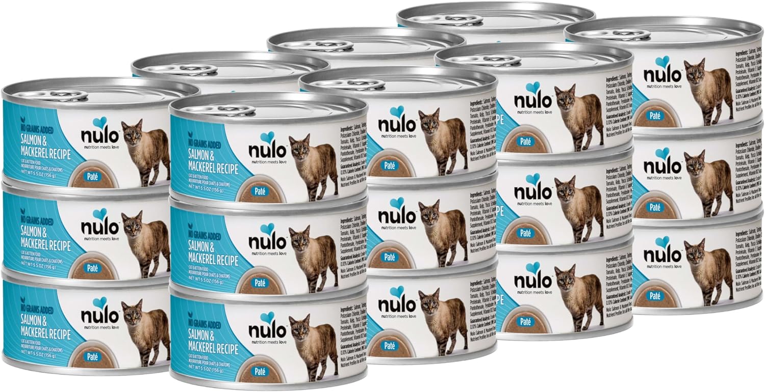 • SALMON & MACKEREL RECIPE - Nulo Freestyle Cat & Kitten Wet Pate Canned Cat Food features our proprietary blend of grain-free proteins and vitamins ideal for cats with diagnosed grain allergies and sensitivities. Pack of 24, 5.5 Oz each