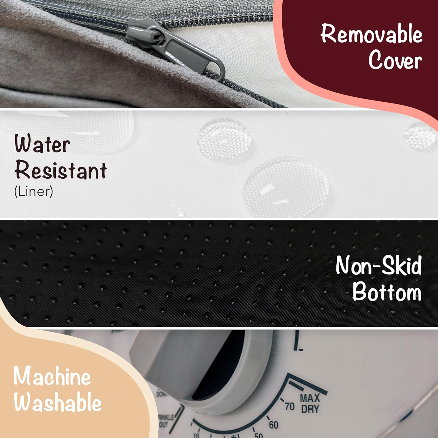 • Special Feature : Machine Washable, Non Skid Bottom, Orthopedic, Padded, Removable Cover