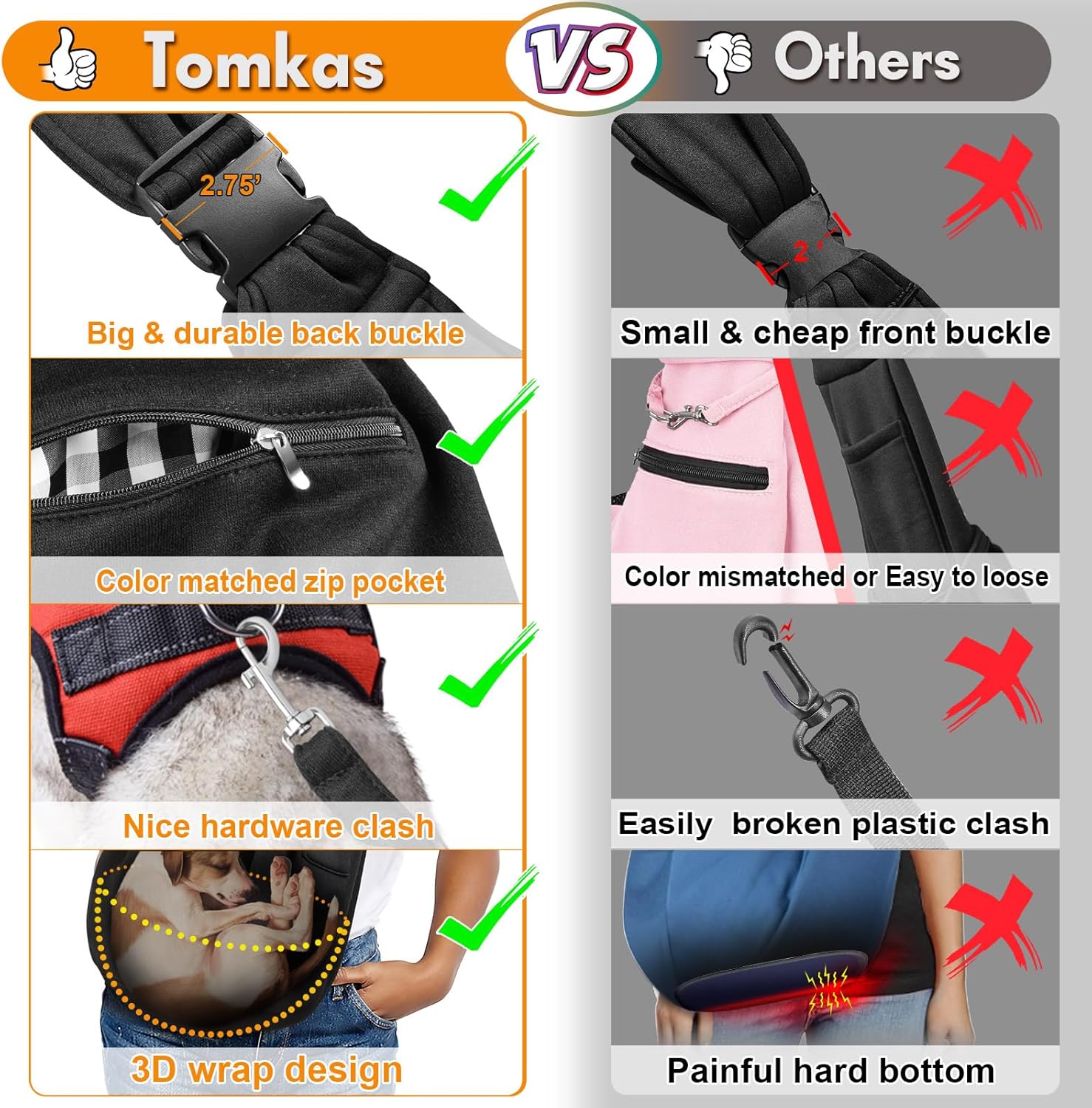 • Large-Capacity Zippered Pockets: Stay organized with TOMKAS's front zippered pocket that can store all of your essentials, such as your phone, keys, cards, wallet, and dog leash. Our reliable carrier is designed with your convenience in mind. Unlike other dog slings without zippered pockets, our pocket keeps your belongings secure throughout use.