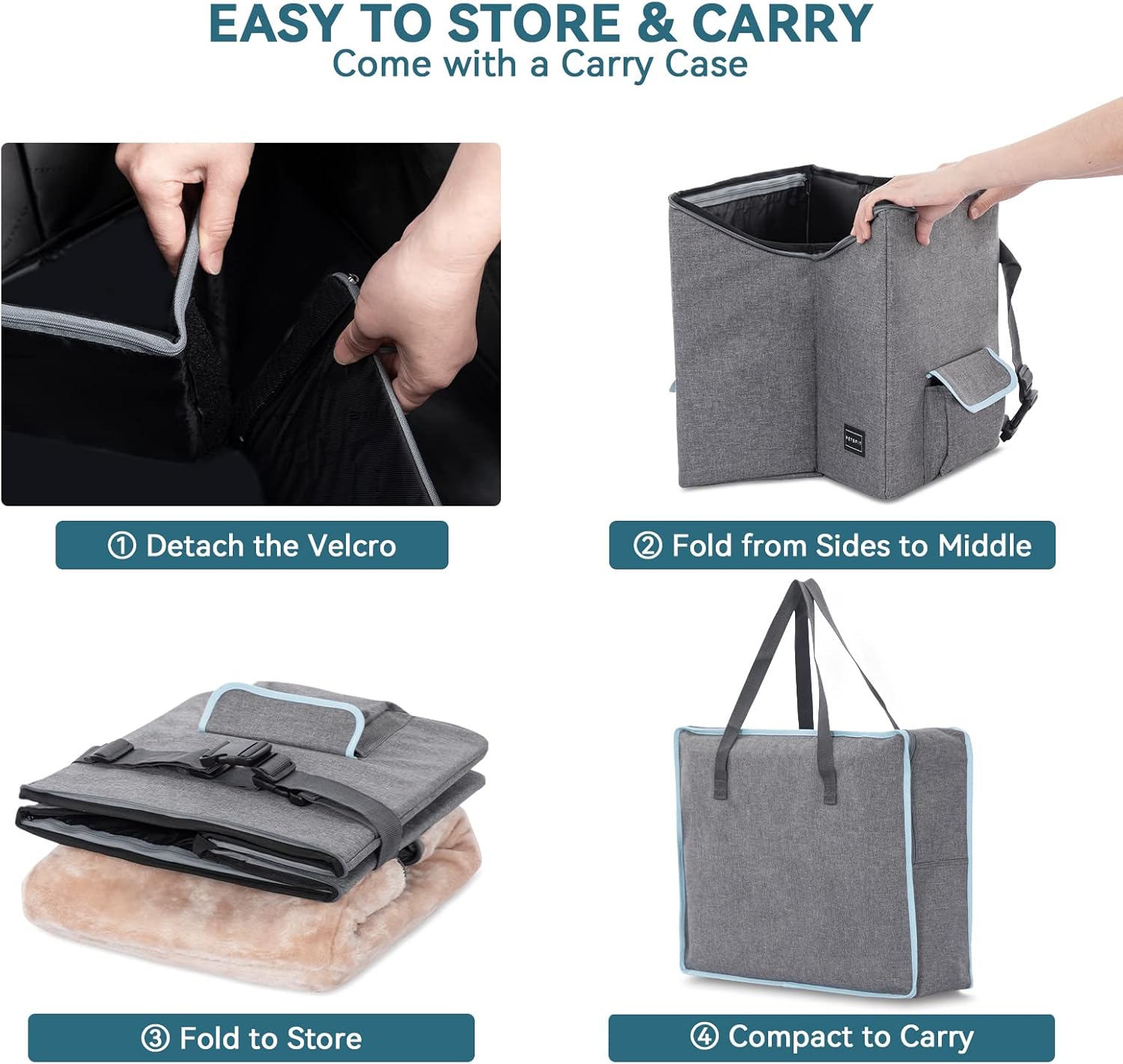 • Easy to use: Quick to install and uninstall in car's front seat, sturdy construction ensures the whole seat is in shape, collapsible design makes dog car seat easy for storage if not used. There are storage bags that can hold pets' daily necessities on the go. It also has an adjustable buckle design, it can be quickly installed on most standard car seats, suitable for a variety of car types.