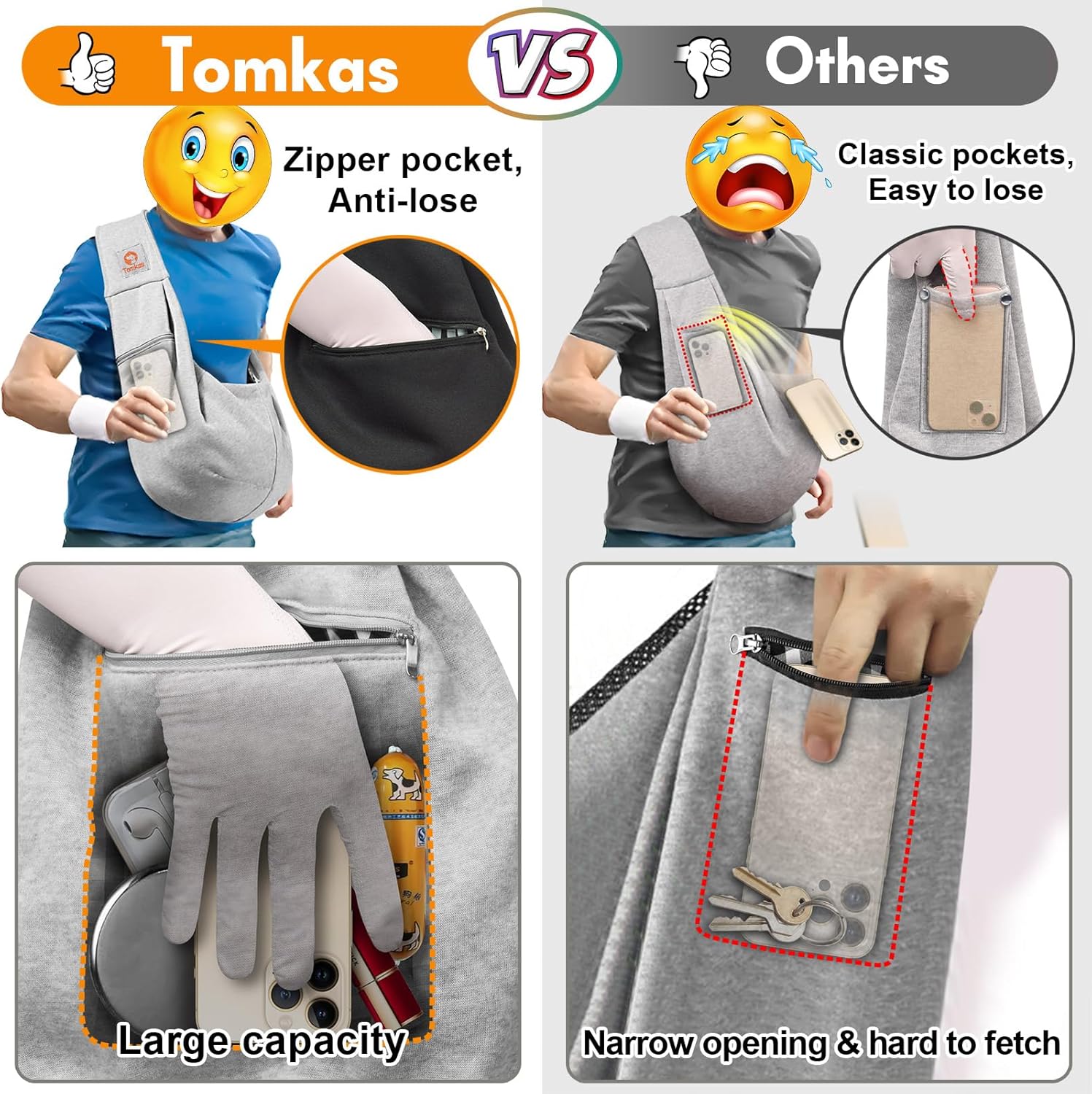 • Large-Capacity Zippered Pockets: Stay organized with Tomkas's front zippered pocket that can store all of your essentials, such as your phone, keys, cards, wallet, and dog leash. Our reliable carrier is designed with your convenience in mind. Unlike other dog slings without zippered pockets, our pocket keeps your belongings secure throughout use.