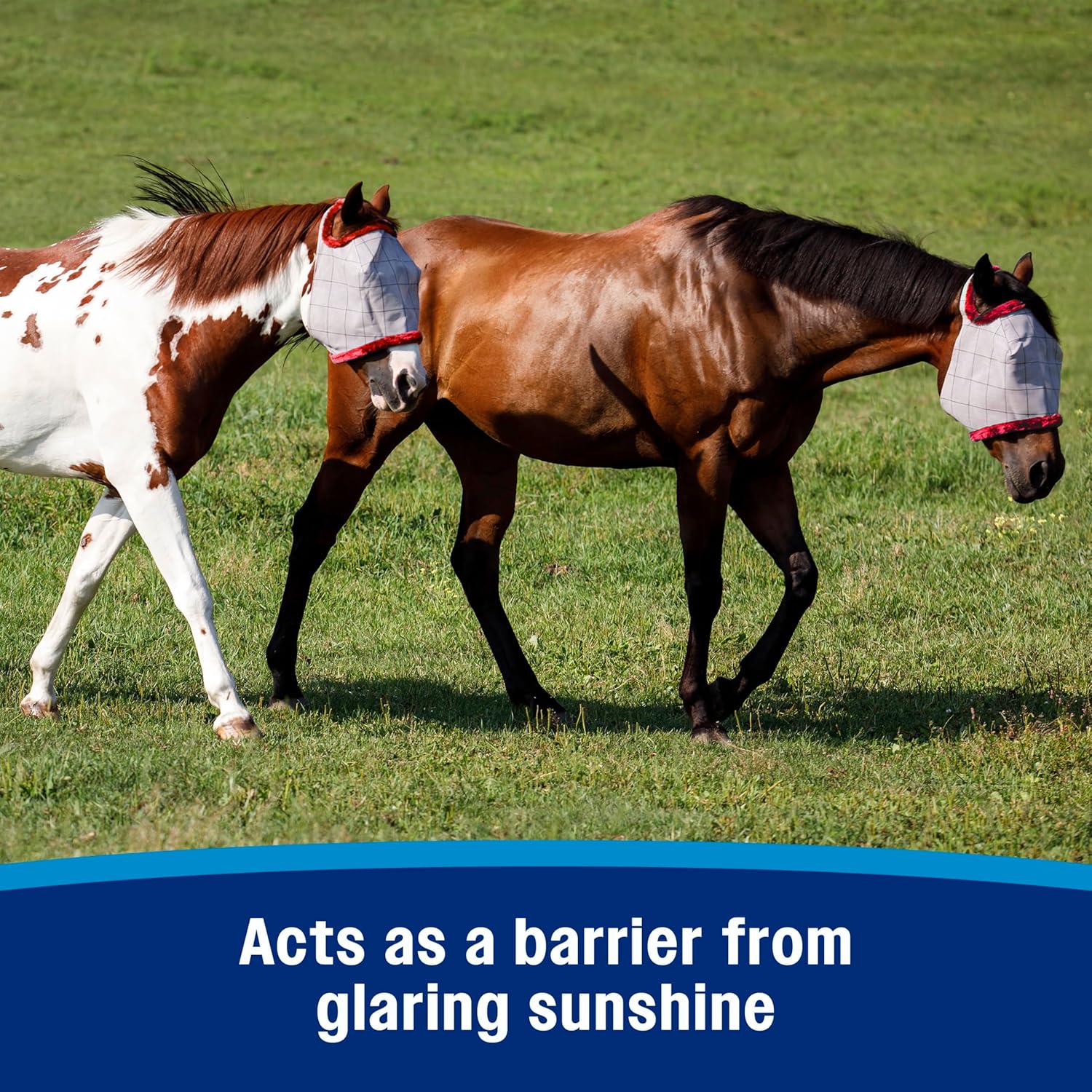 • INNOVATIVE DESIGN extends over horseโ€™s face to provide extended coverage against insects and glaring sunlight.
