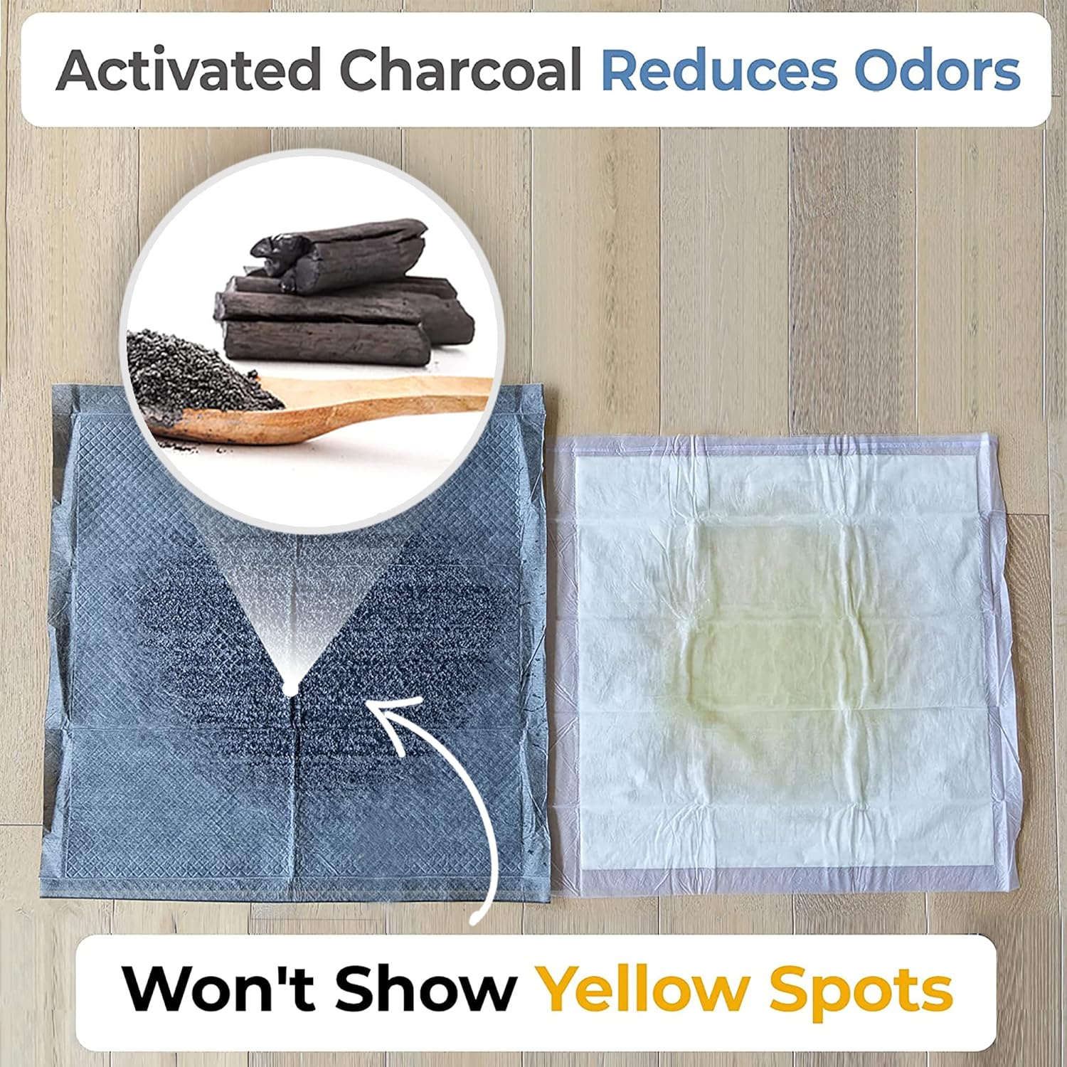 • Odor-Eliminating Charcoal Puppy Pads: Activated charcoal traps & neutralizes dog potty smell. Charcoal in our pee pads for dogs is natural, making our pet pee pads safe for puppies, cats & other small pets. Use them as dog training pads indoors, without worrying about the smell. Ideal dog housebreaking supplies.