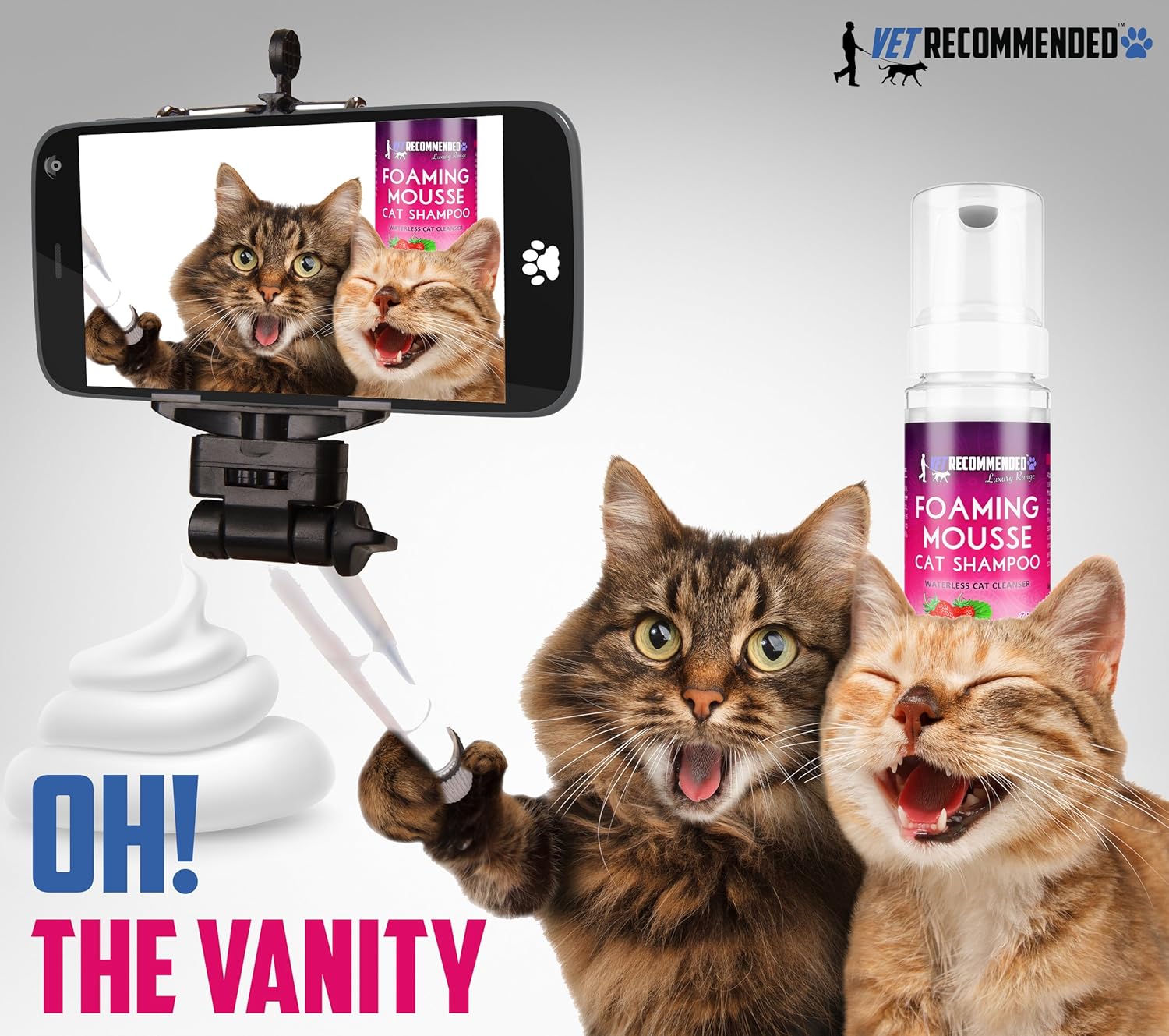• The No-Rinse Foam Mousse, Leave-In Formula: Our natural cat shampoo will remove pet odors in a jiffy with a quick & easy solution for cats that hate to be soaked. Use with spot on flea treatments. Use our cat dry shampoo as needed to moisturize skin & coat. Works better than regular cat dander wipes for allergy sufferers.