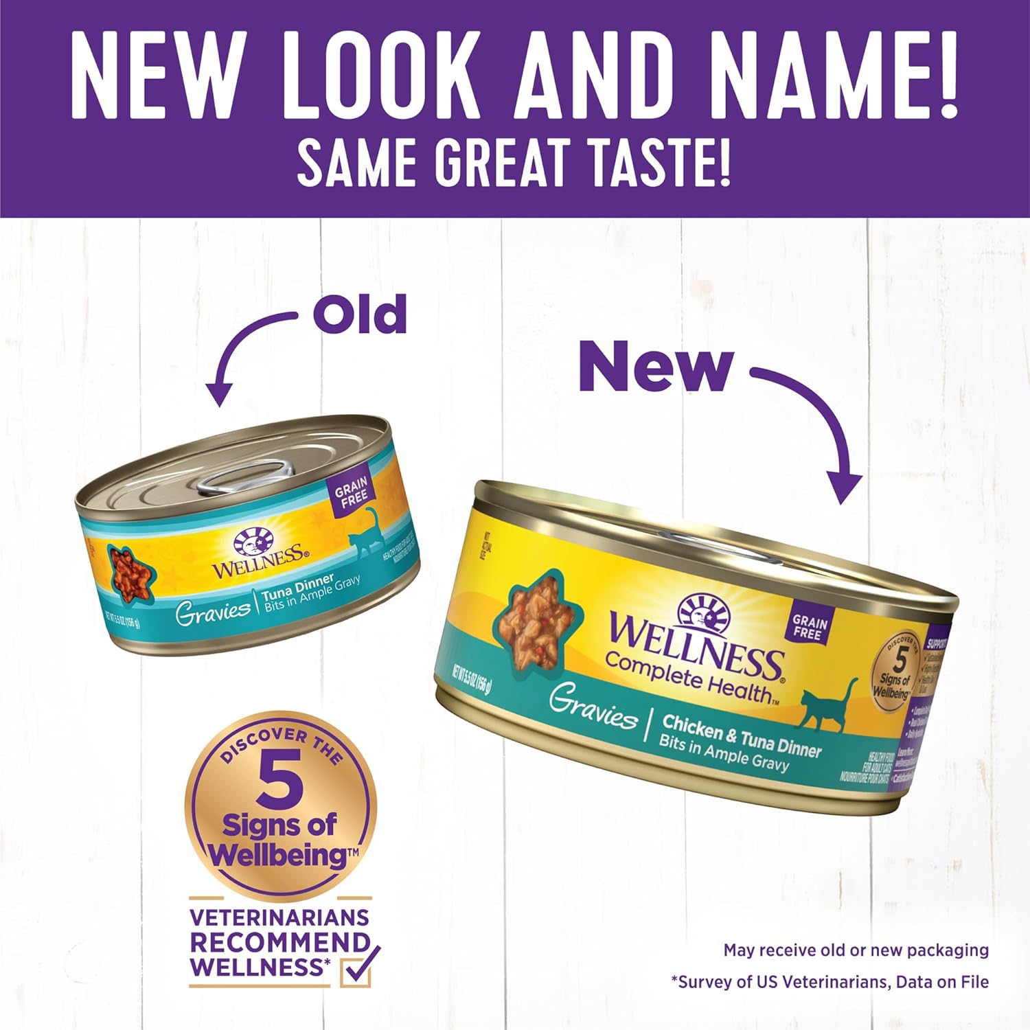 Wellness Complete Health Gravy Adult Wet Cat Food, Natural, Protein-Rich, Grain Free, 5.5 Ounce, 12 Pack, (Chicken & Tuna Dinner)