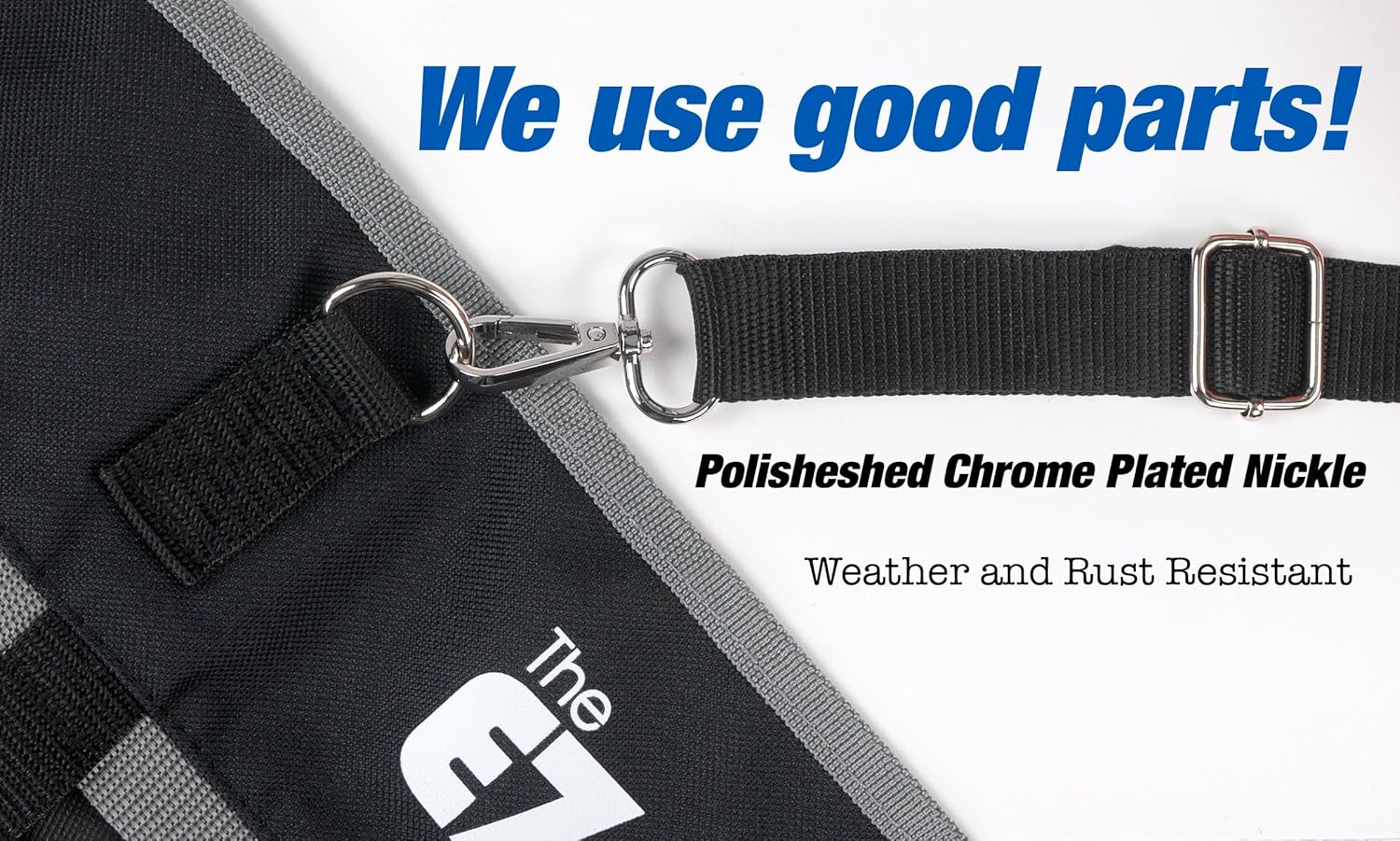 • INCLUDES - This portable, space saving bag has adjustable straps with nickel plated bolt snap and rings. It will keep fan securely in place. *Fan not included