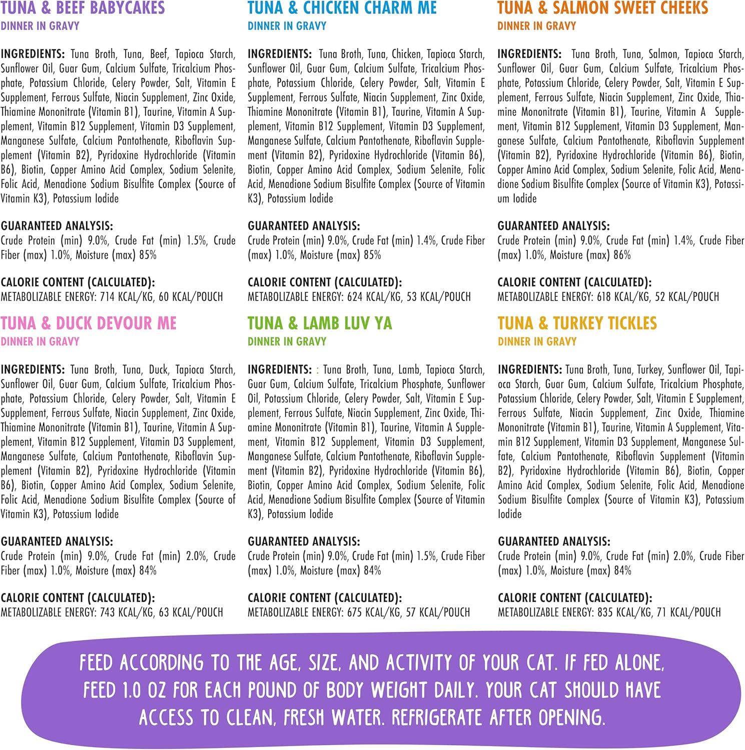 • Rainbow A Gogo Variety Pack! (3oz Pouch, Pack of 12) OMG, Six different flavors in one variety pack! Featuring premium proteins like tuna, chicken, salmon, beef, lamb, and duck in a tasty gravy