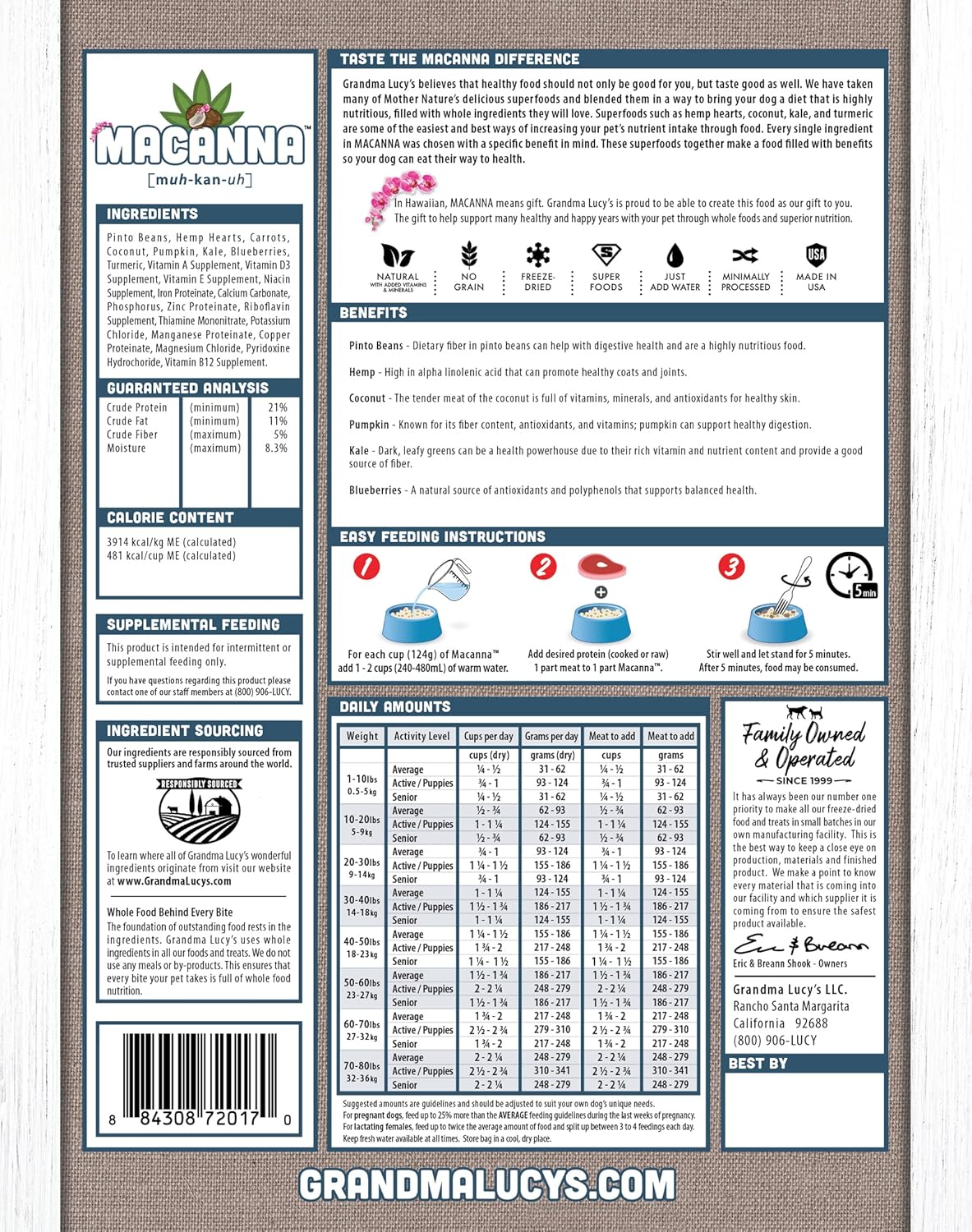 Grandma Lucy's Macanna Dog Food, Grain Free and Freeze-Dried - Pre-Mix, 3Lb Bag