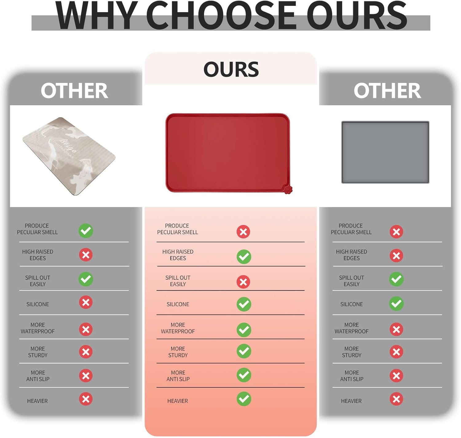 • Anti-slip design: our non-slip pet feeding mat ensures stability for your pet's bowl, preventing any water stains or spills on the floor. Enjoy peace of mind when feeding your pet, knowing that their food stays in place