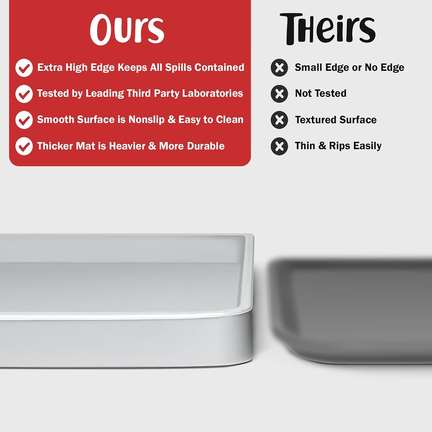 • Less Mess & Less Stress: Super high edge (0.6”) of DogBuddy Dog Food Mat keeps the spilled food and water on the mat and away from your beautiful floor. Silicone is naturally 100% waterproof, so what happens on the mat stays on the mat.