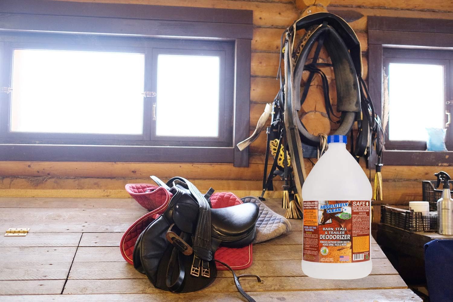 • POWERFUL NATURAL ENZYMES: Absolutely Clean Barn, Stall, & Trailer odor eliminator is the best way to clean horse barns, stalls. Our formula uses Powerful, pet deodorizer allowing you to just spray and walk away! This unique enzymatic cleaner uses the enzymes to neutralize and control odors from horse urine, feces, and ammonia on contact. Freshen your horses’ living space today