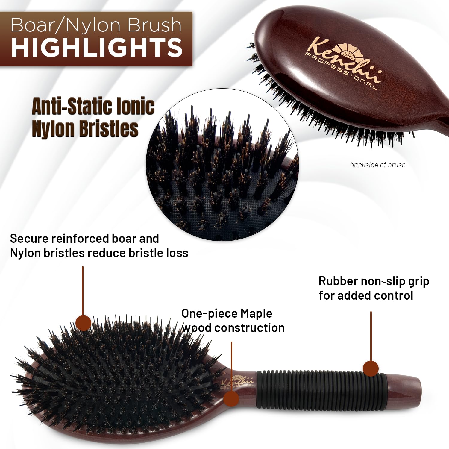 Kenchii Boar and Nylon Bristle Dog/Cat Grooming Brush with One-Piece Maple Body-Choose Size Large, Small (Large)