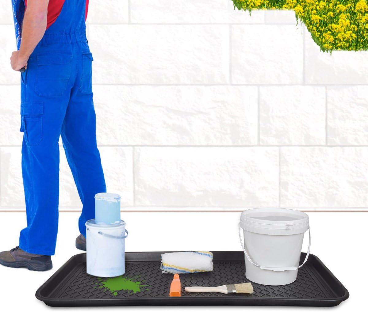 • ALL WEATHER USE- Raised 1.2” inch edges serve as a spill containment tray to protect your hardwood and carpet floors from mud, paint, pet or liquid stains. This tray can be used both indoors and outside. Keep one in your entryway or mud room to catch water from rain or snow and every day dirt. You also can keep one on your porch or deck to keep dirt and water from ever coming in your home.