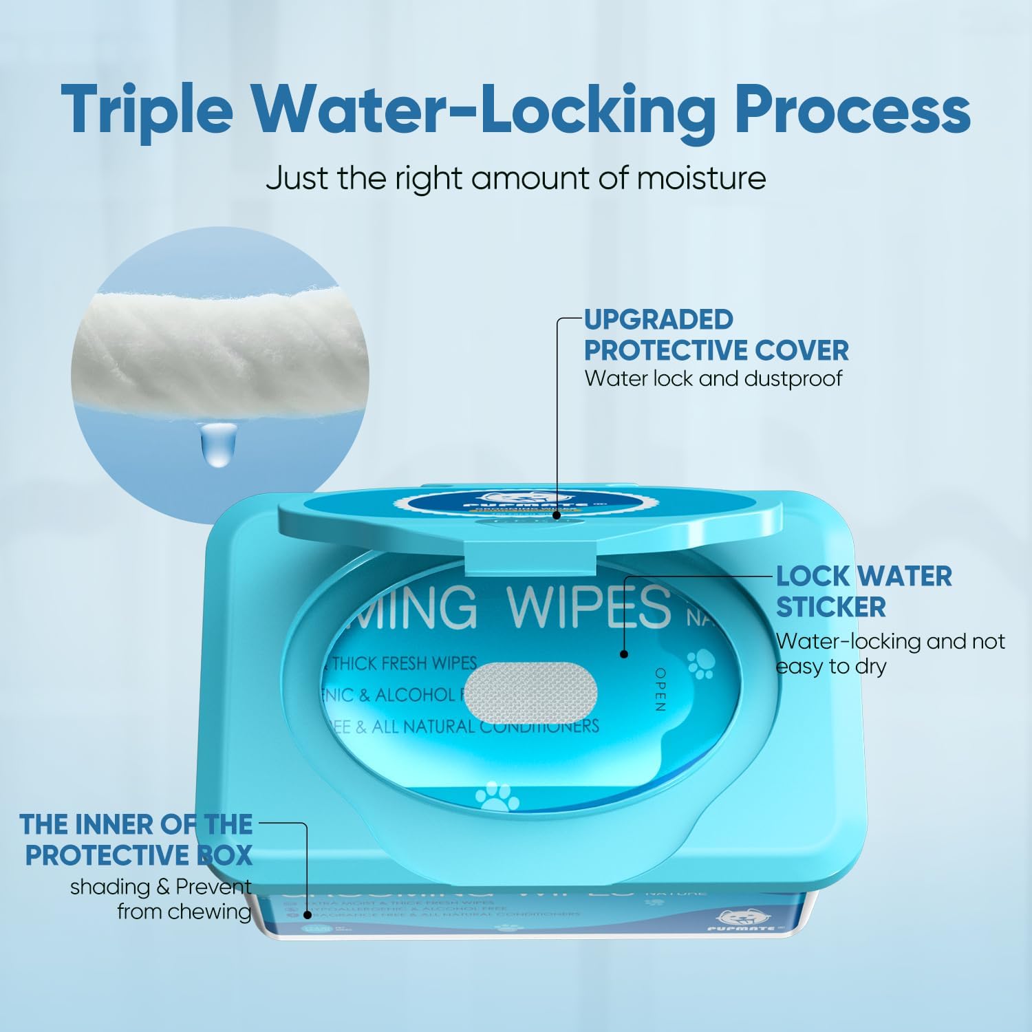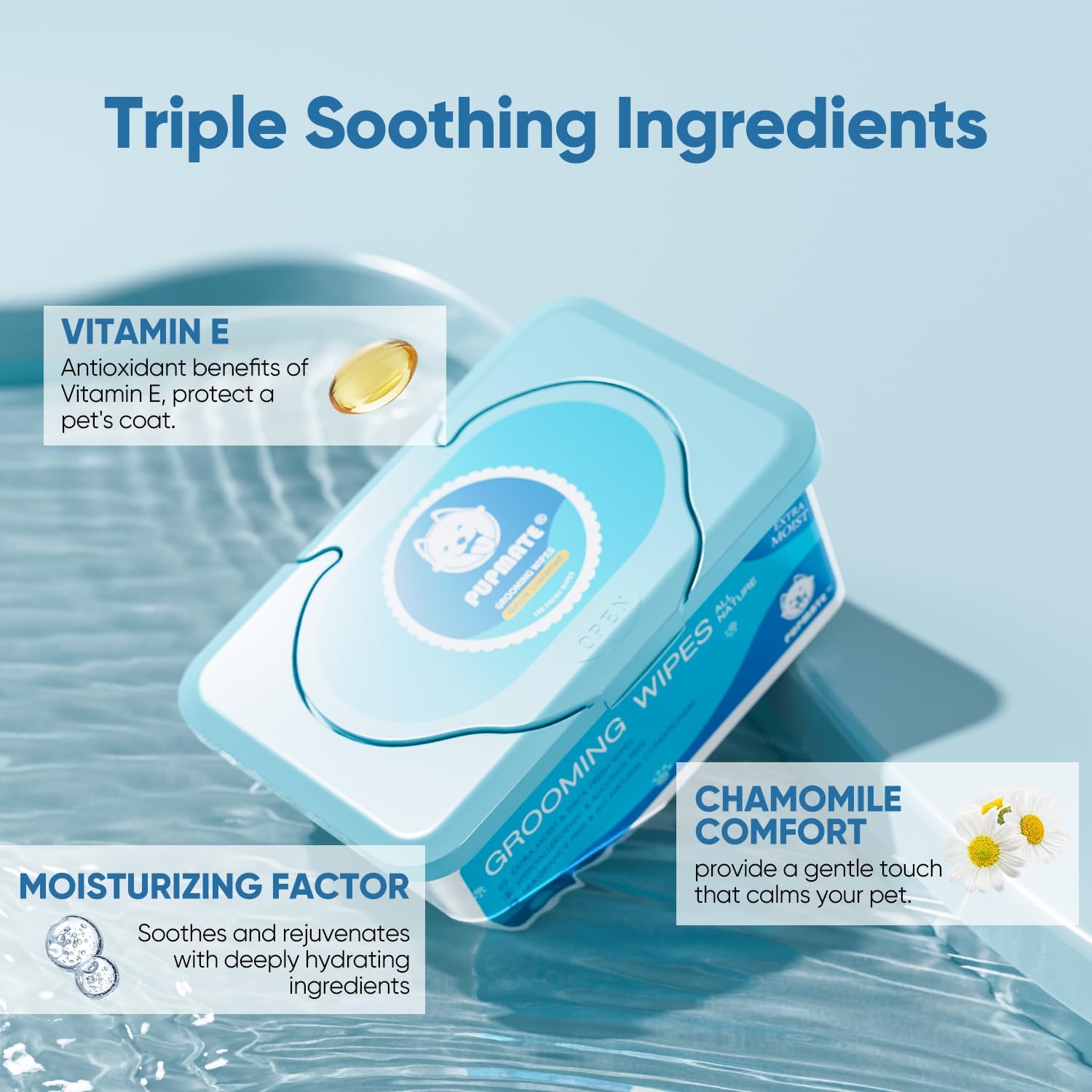 • DELICATE AND EFFICIENT CLEANSING: At PUPMATE, These grooming wipes for dogs & cats, and puppies wipes go beyond cleaning โ€“ they embody our commitment to creating a happier, healthier life for pets. Whether it's ridding them of dirt, mud, or a weird smell, our pet wipes work diligently to cleanse their butt, eyes, ears, and paws, ensuring that their four-legged friend feels consistently clean and delightfully refreshed
