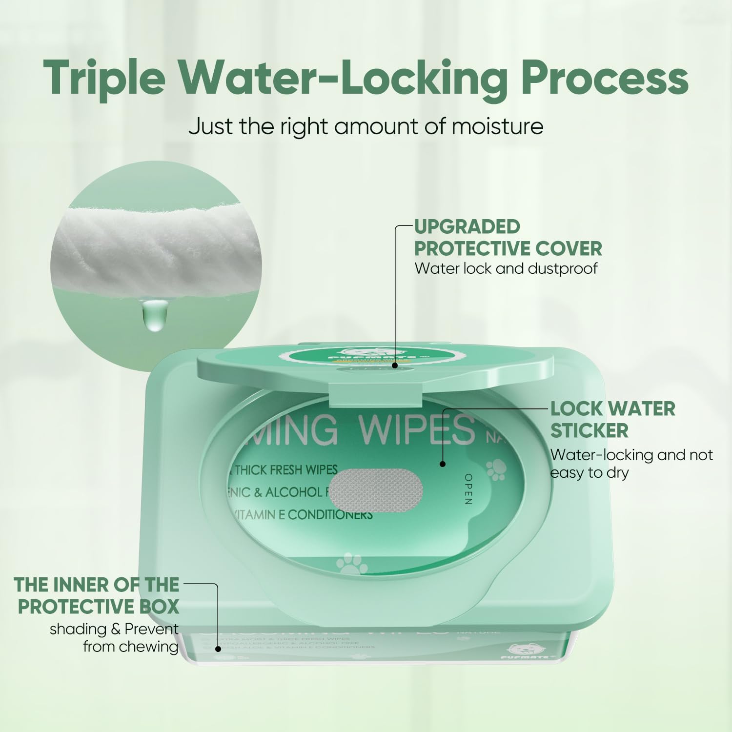 • DELICATE AND EFFICIENT CLEANSING: At PUPMATE, These grooming wipes for dogs & cats, and puppies wipes go beyond cleaning โ€“ they embody our commitment to creating a happier, healthier life for pets. Whether it's ridding them of dirt, mud, or a weird smell, our pet wipes work diligently to cleanse their butt, eyes, ears, and paws, ensuring that their four-legged friend feels consistently clean and delightfully refreshed