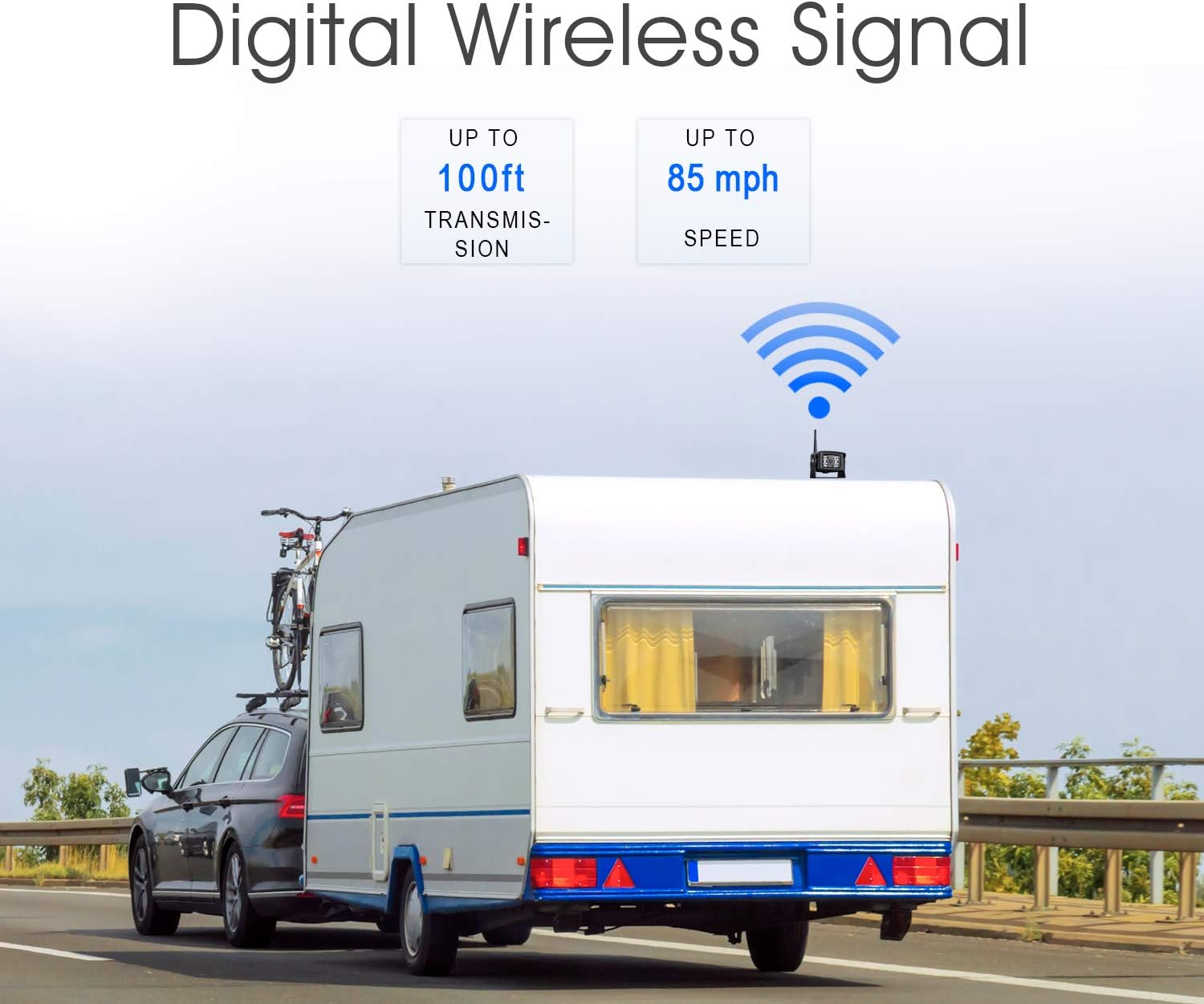 • 🔅【Backup camera No Interference】Totally Upgrade 3nd Generation Digital Wireless Signal. Not only 65 mph there is no change, but also the camera wireless signal can stay smooth and clear even car speeds up to 70 mile.