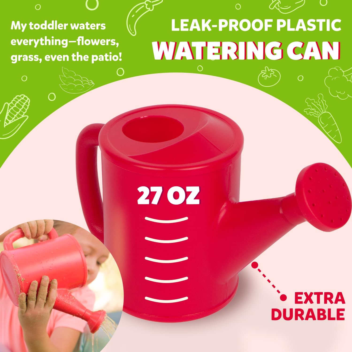 Matching Board Book - Red Kids Gardening Tools Set Includes Sturdy Tote Bag, Watering Can, Shovel, Rake, and Trowel - Garden Storybook - Kids Garden Tools- Easter Gifts for Toddler Age on up.
