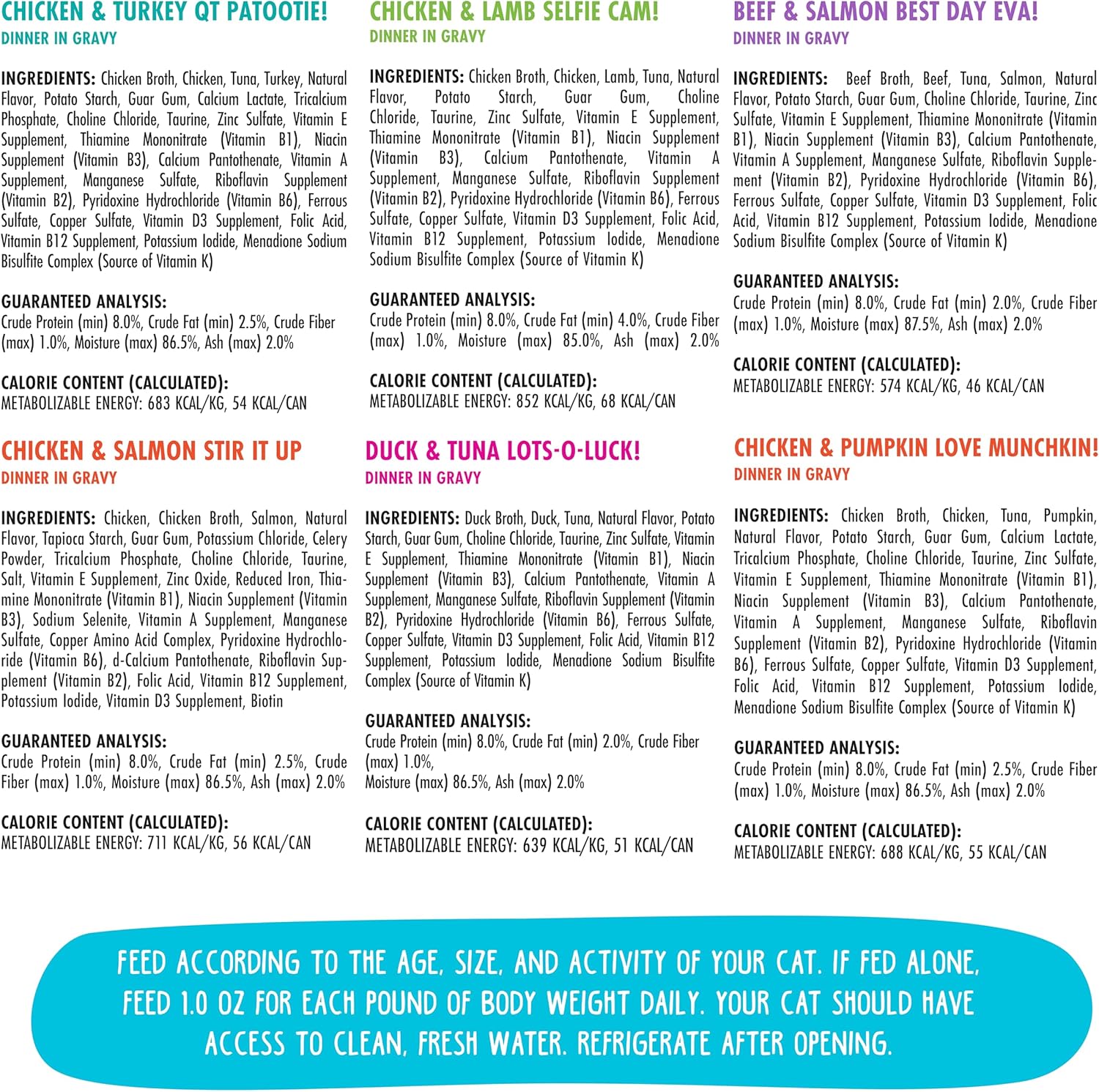 • Rainbow Road Variety Pack (2.8oz Cans, Pack of 12) OMG, Six different flavors in one variety pack! Featuring premium proteins like chicken, salmon,turkey, lamb, duck, and beef in a tasty gravy.