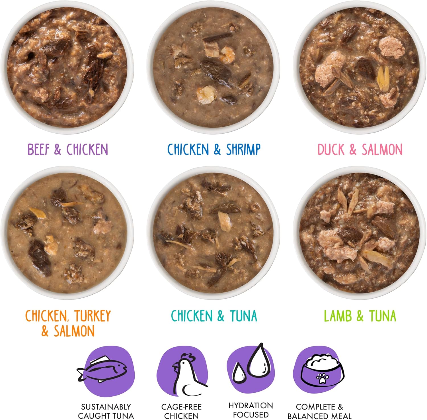• Potluck O' Pouches Variety Pack (2.8oz Pouches, Pack of 12) OMG, Six different flavors in one variety pack! Featuring premium proteins like tuna, chicken, salmon, beef, lamb and duck in a tasty gravy.
