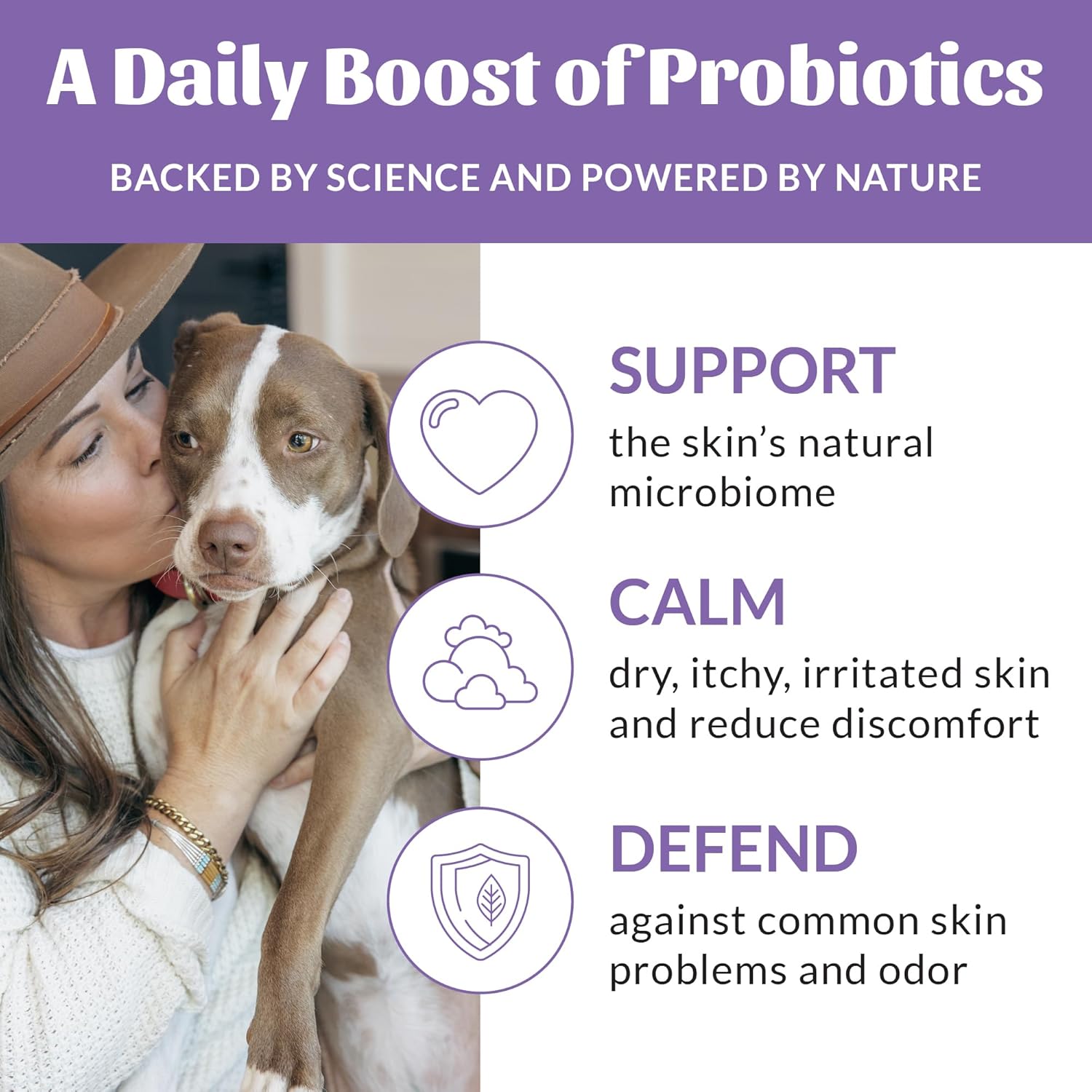 • Probiotic Formula- Each bottle contains topical probiotics that help support a healthy microbiome to defend against common skin problems such as itching, odor, dryness, dandruff, hot spots, and excessive shedding.