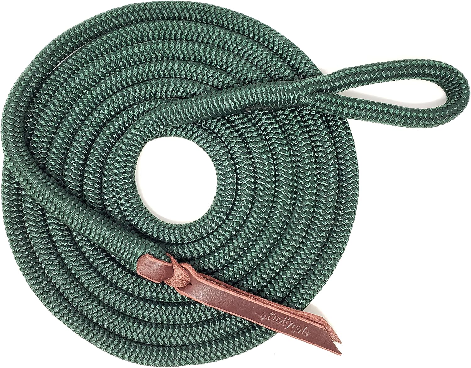 Double Braid Lead Rope with Eye Splice Loop, 12-14FT Lengths (Hunter Green, 12 ft.)